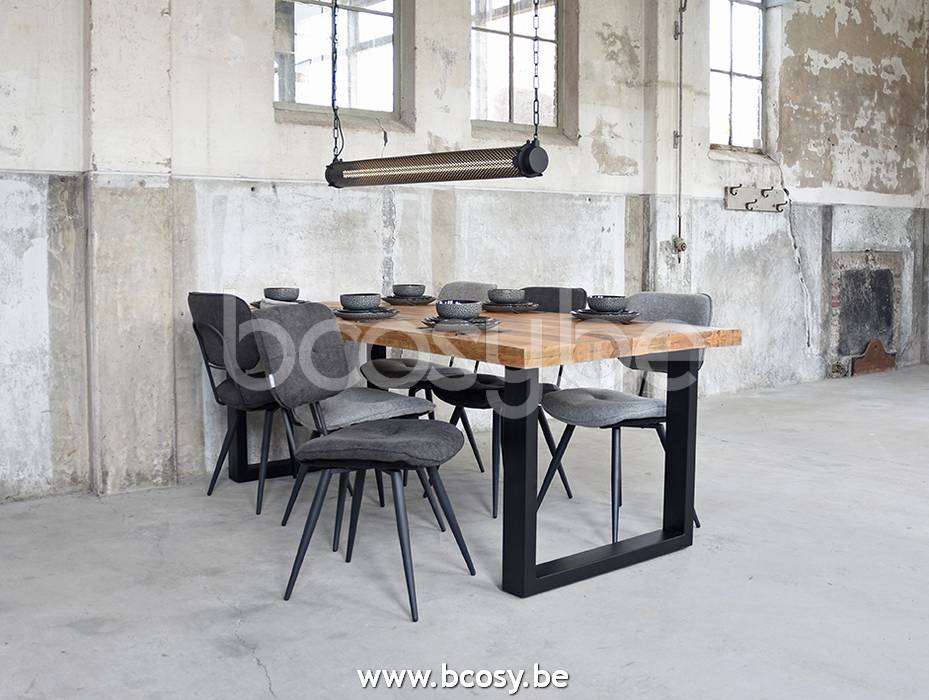 Français: LABEL51 Chaise de salle à manger Lux Zinc Weave Zwart Metalen Frame