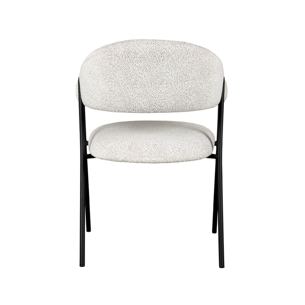 Eetkamerstoel Lowen van LABEL51, uitgevoerd in champagne bouclé is een prachtige en elegante stoel gemaakt van de mooiste materialen. Het frame, die de verbinding vormt tussen de rugleuning en zitting maakt deze stoel extra bijzonder.