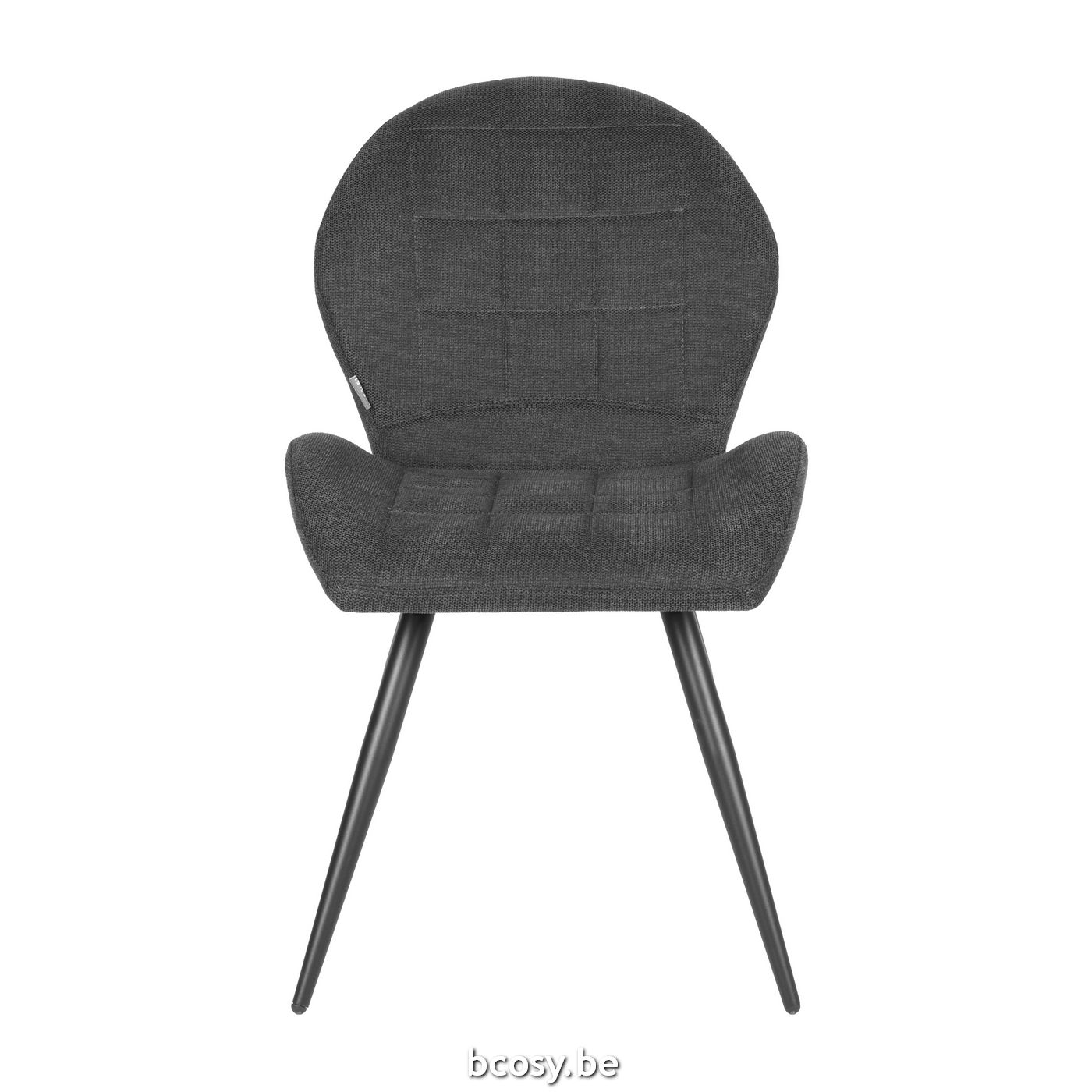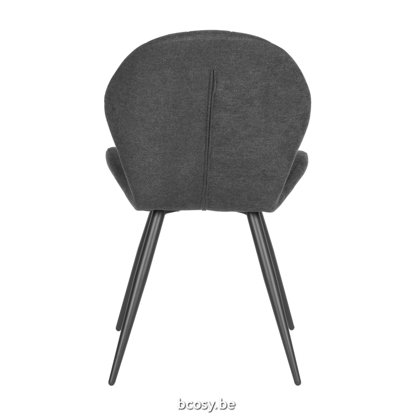 Français: LABEL51 Chaise de salle à manger Sil Anthracite Weave Zwart Metalen Frame