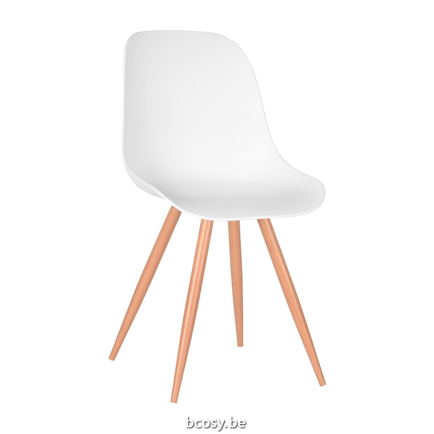 LABEL51 Eetkamerstoel Rimini - Wit - PP - Naturel Houtlook Frame