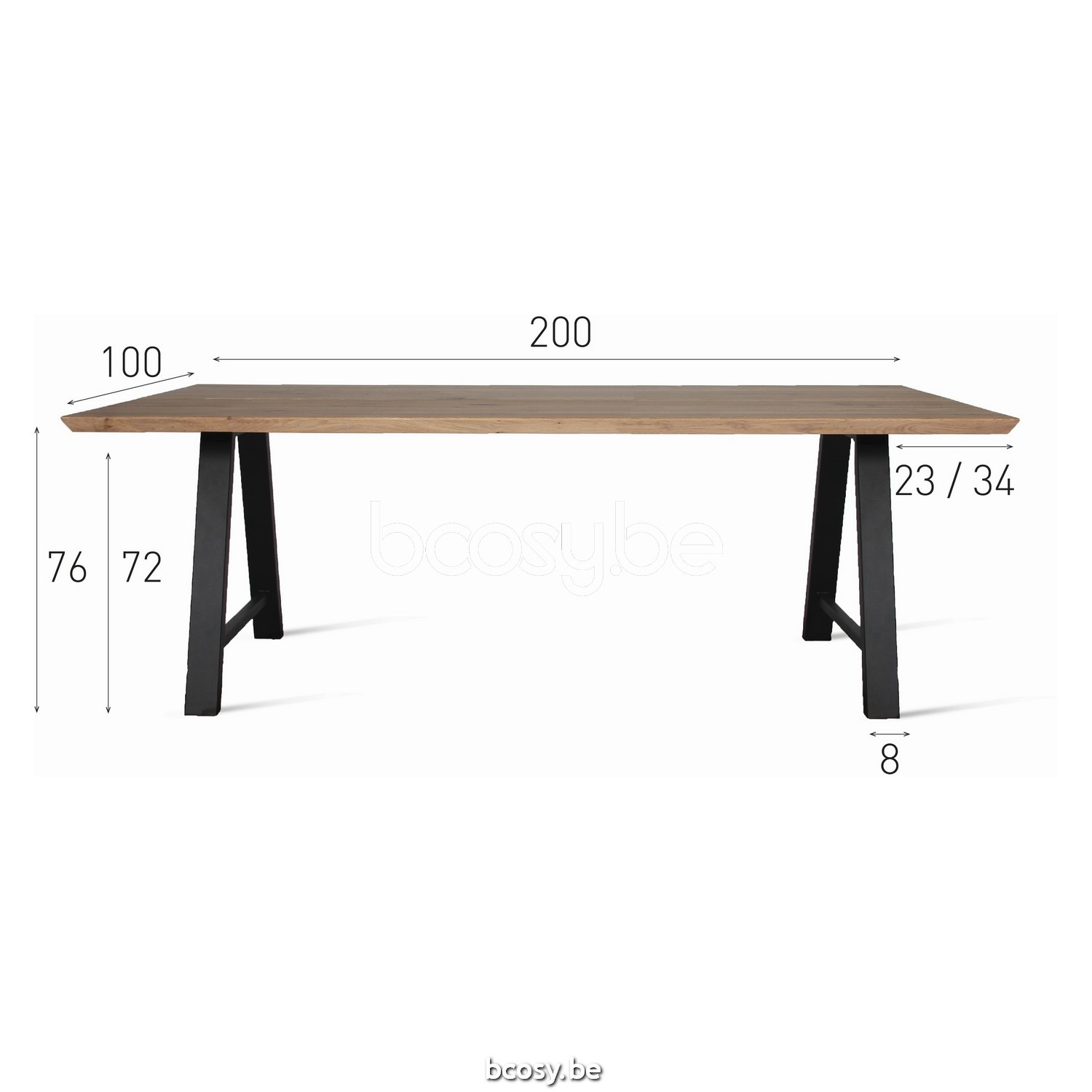 English: Vincent Sheppard Albert Dining Table One Piece Top 200x100 Black Powder Coated Steel A frame Natural Oak top 4cm beveled edge