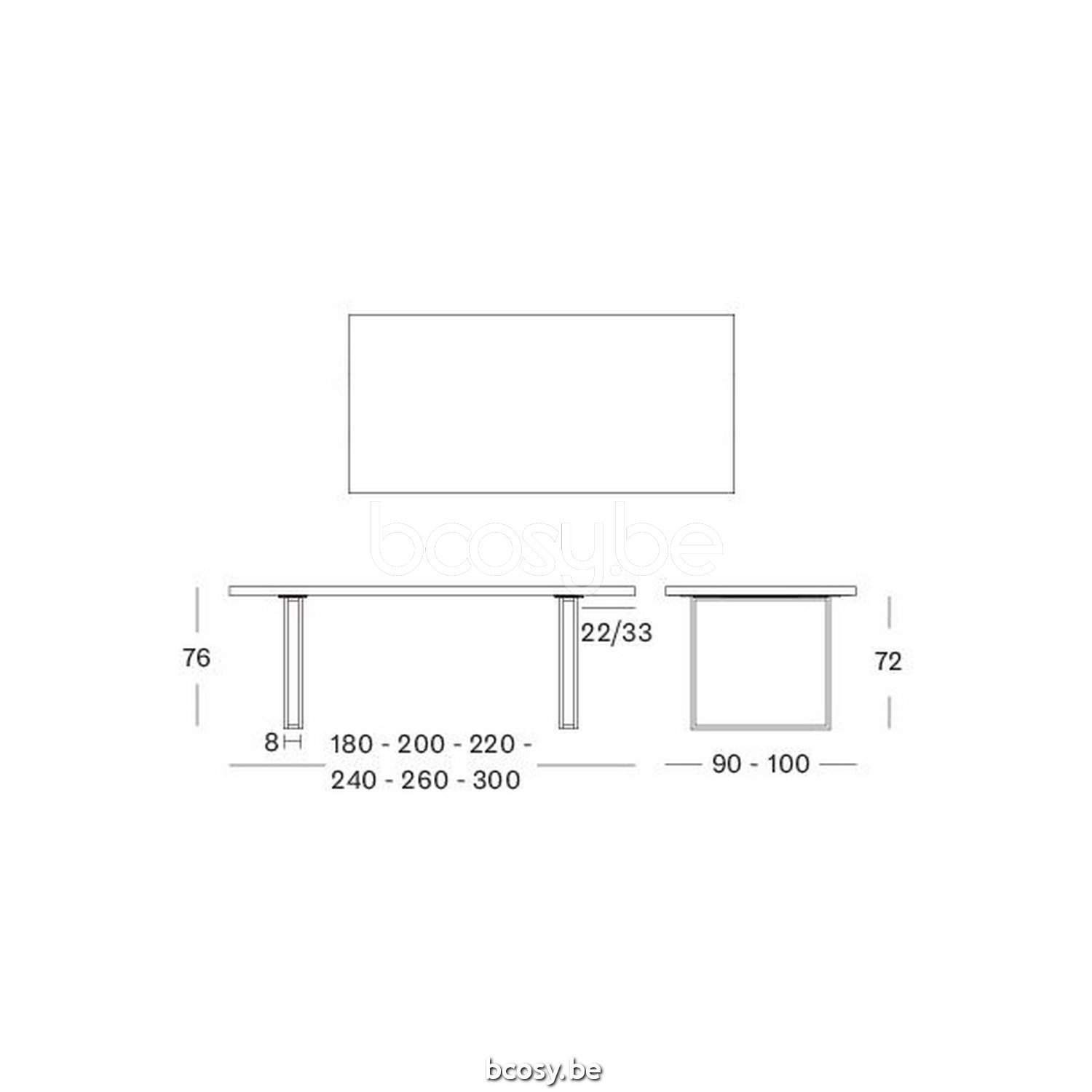 Afmetingen/Dimensions/Dimensionen: L=240 cm B=100 cm H=76/72 cm