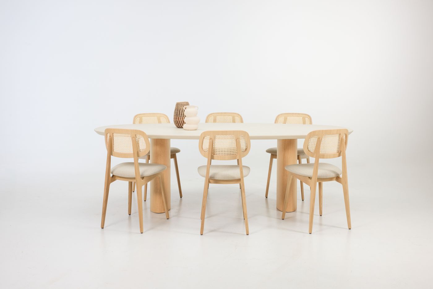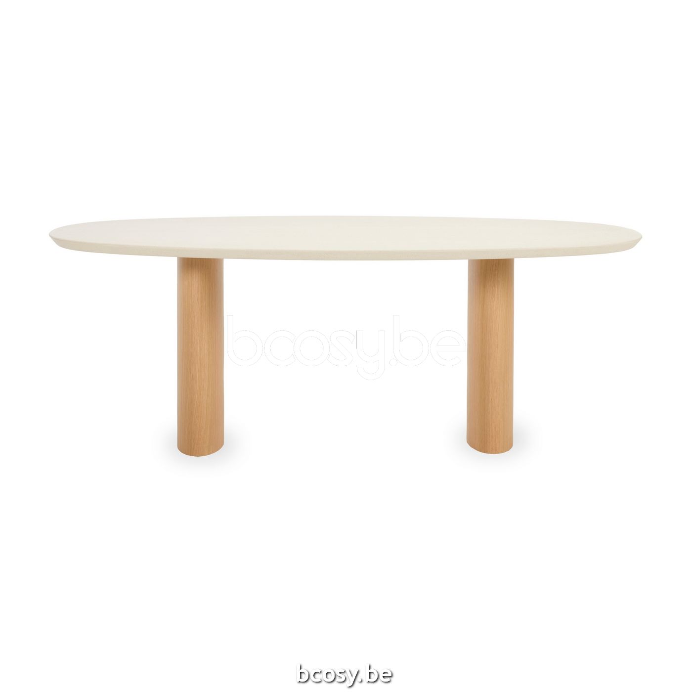 English: Vincent Sheppard Foster Ellipse Dining Table 2 legs 200x120 Natural Plywood Oak frame Lunar White Mineral top