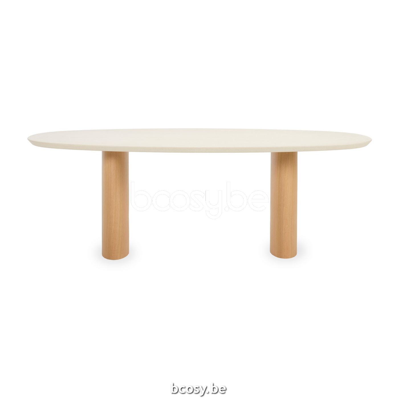 English: Vincent Sheppard Foster Ellipse Dining Table 2 legs 220x120 Natural Plywood Oak frame Lunar White Mineral top