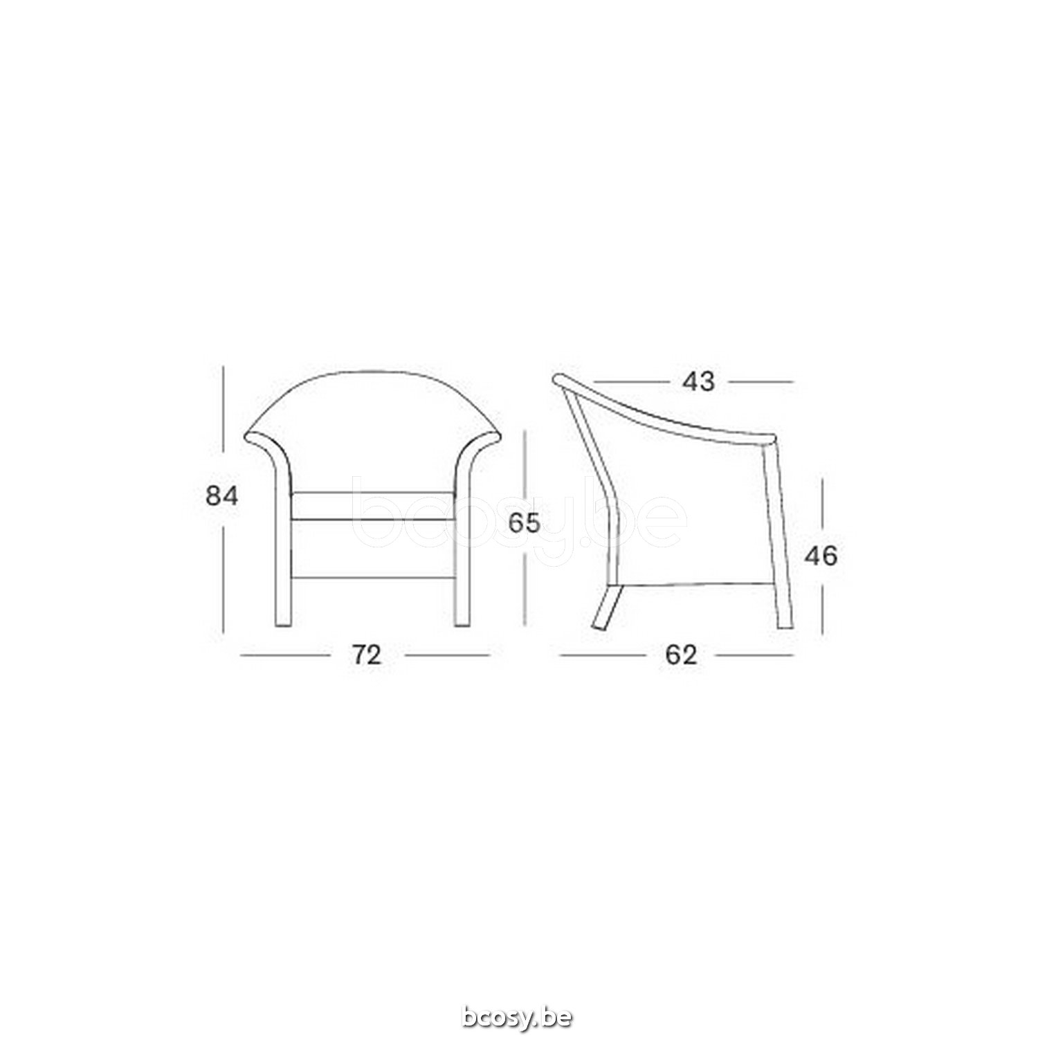Afmetingen/Dimensions/Dimensionen: L=72 cm B=62 cm H=84 cm SH=46 cm AH=65 cm SD=43 cm