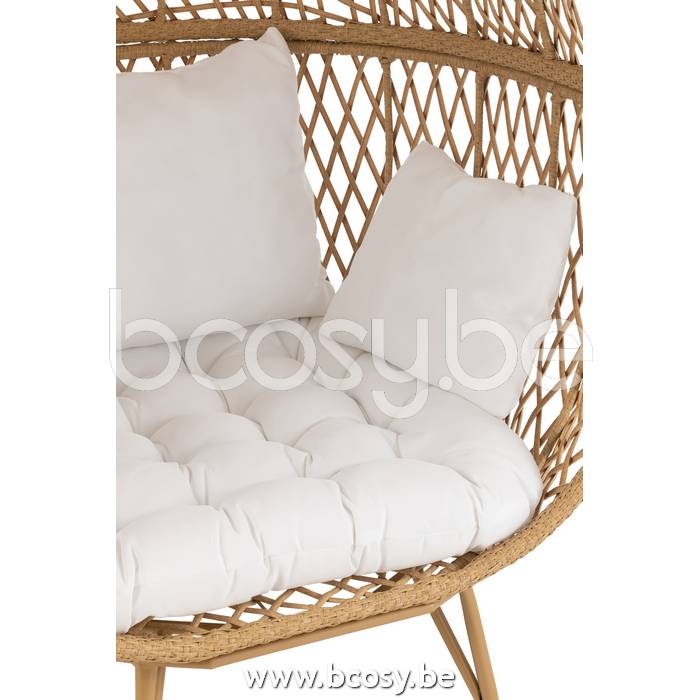 J-Line Loungestoel-Kussens Eva Metaal-Riet Beige L106xB106xH146 cm