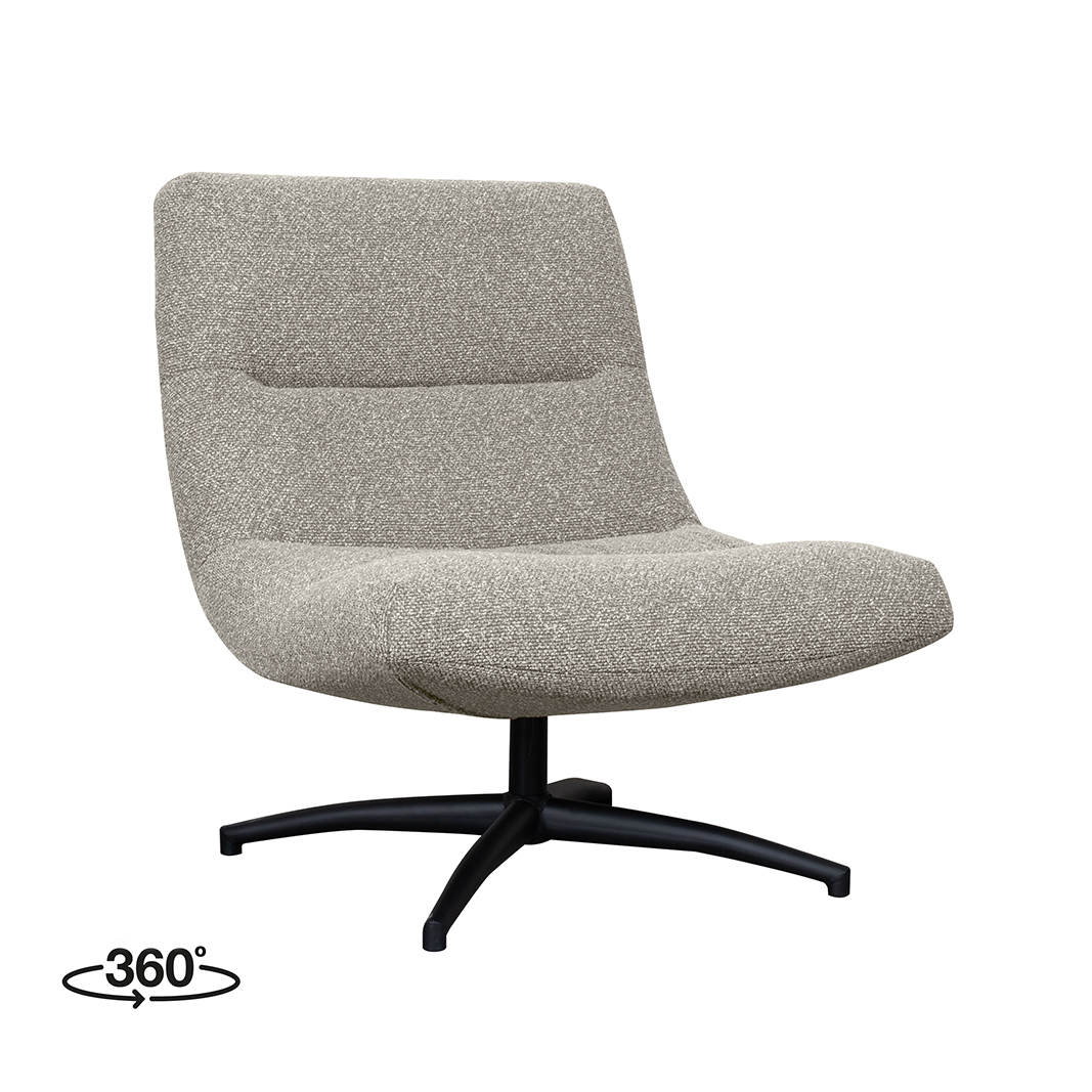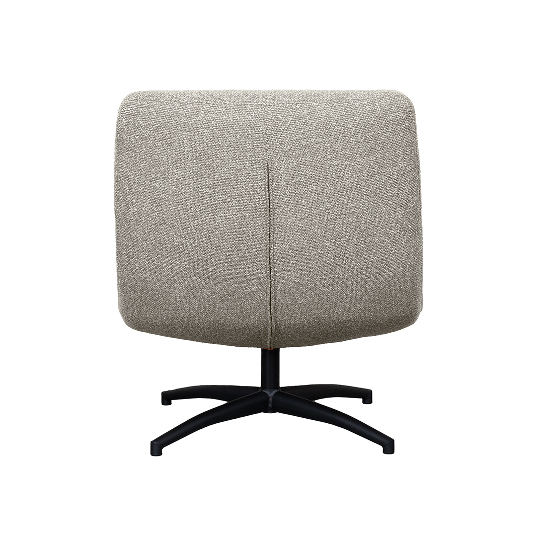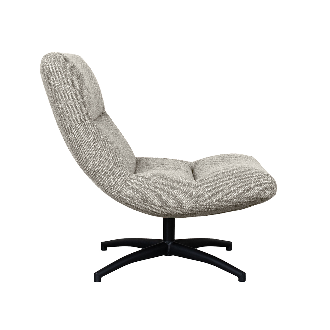 Draaifauteuil Calix van LABEL51 is een echte elegante eyecatcher. Deze fauteuil combineert stijlvol comfort met een eigentijds ontwerp. Uitgevoerd in de luxueuze stof Mushroom royal boucle, geeft de Calix een zachte en rijke uitstraling aan elke ruimte. De boucle stof heeft een subtiele, wollige textuur, wat zorgt voor een aangename zitervaring en een uitnodigende sfeer.