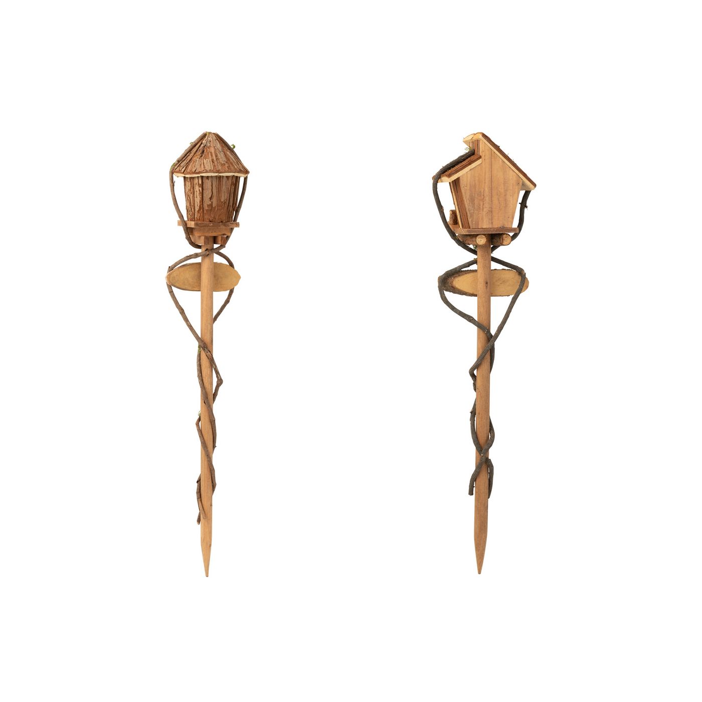 J Line Casetta Per Uccelli Su Bastone Legno Di Abete Naturale Assortimento Di 2