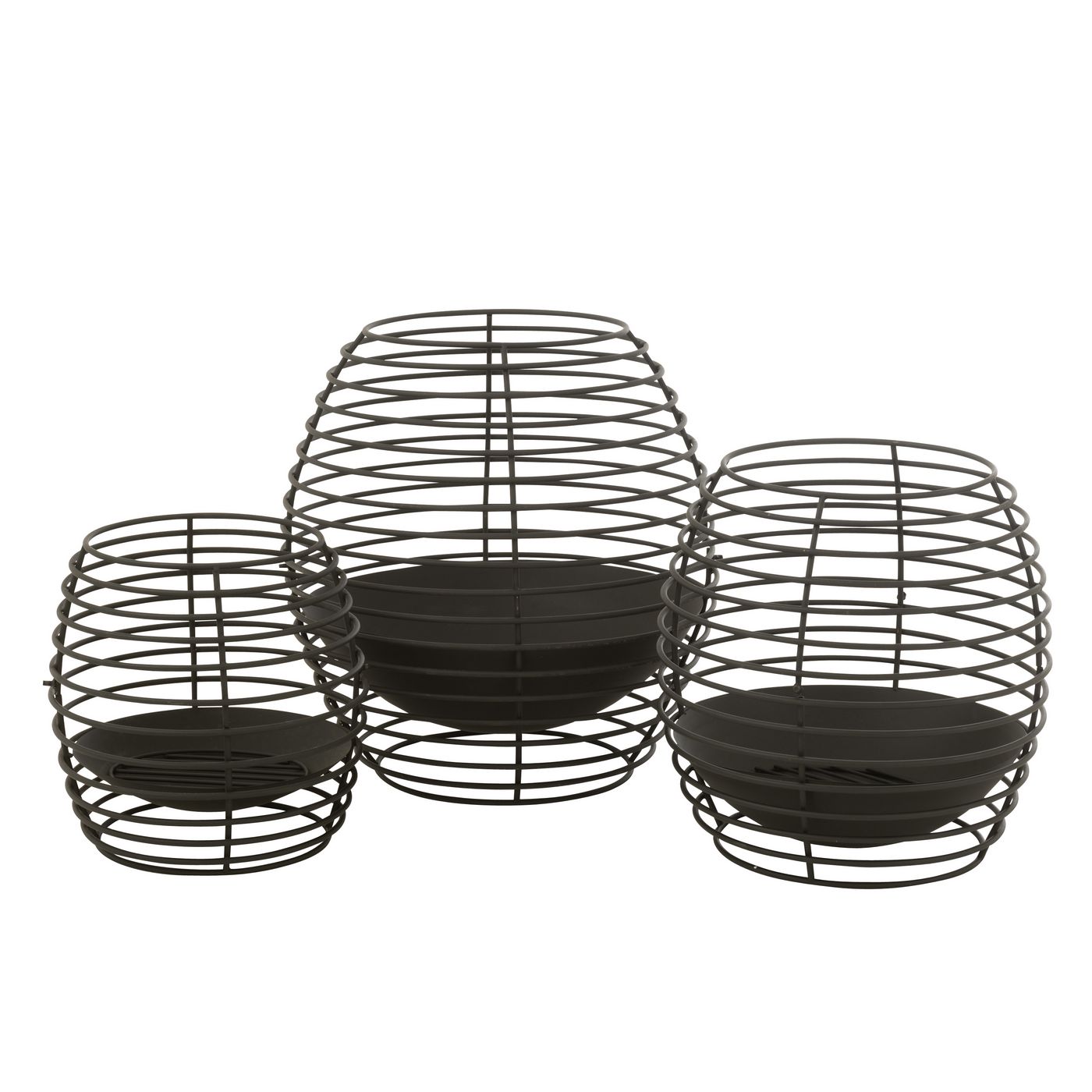 J Line Braciere Rotondo Rings Ferro Nero Large