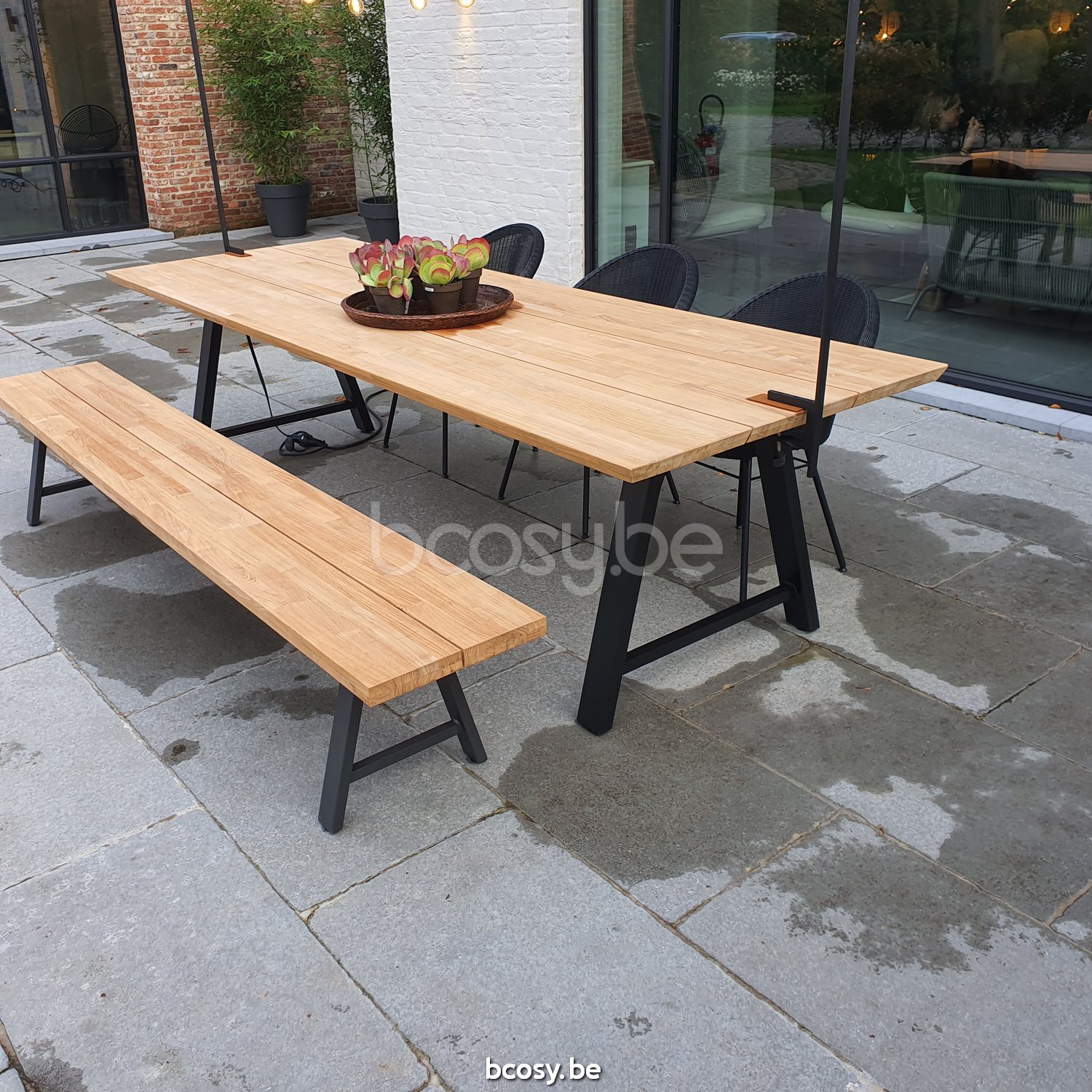 English: Vincent Sheppard Matteo Bench 265x40 Black Aluminium frame Untreated Teak top