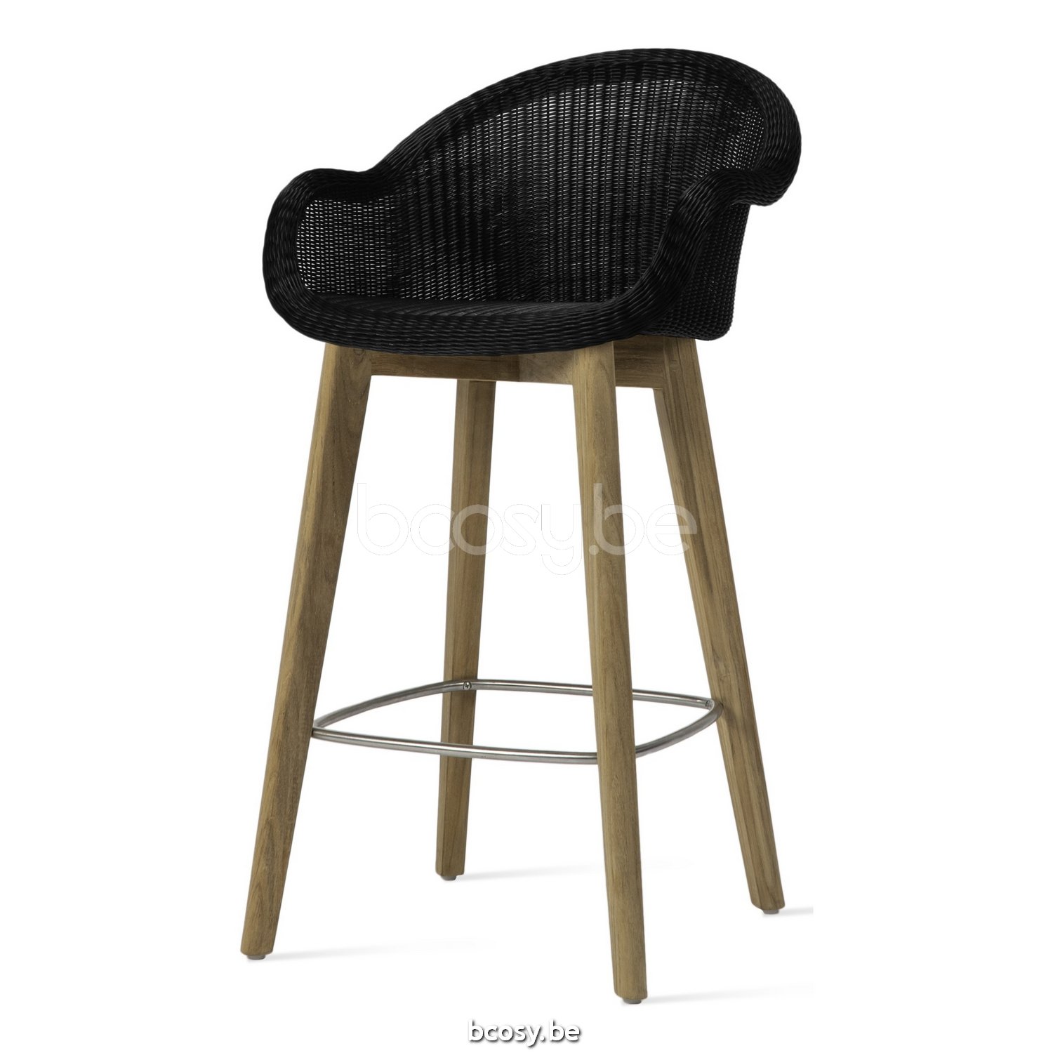 Vincent Sheppard Edgard Barkruk Onbehandeld teakhout frame Zwart Wicker Polyethyleen