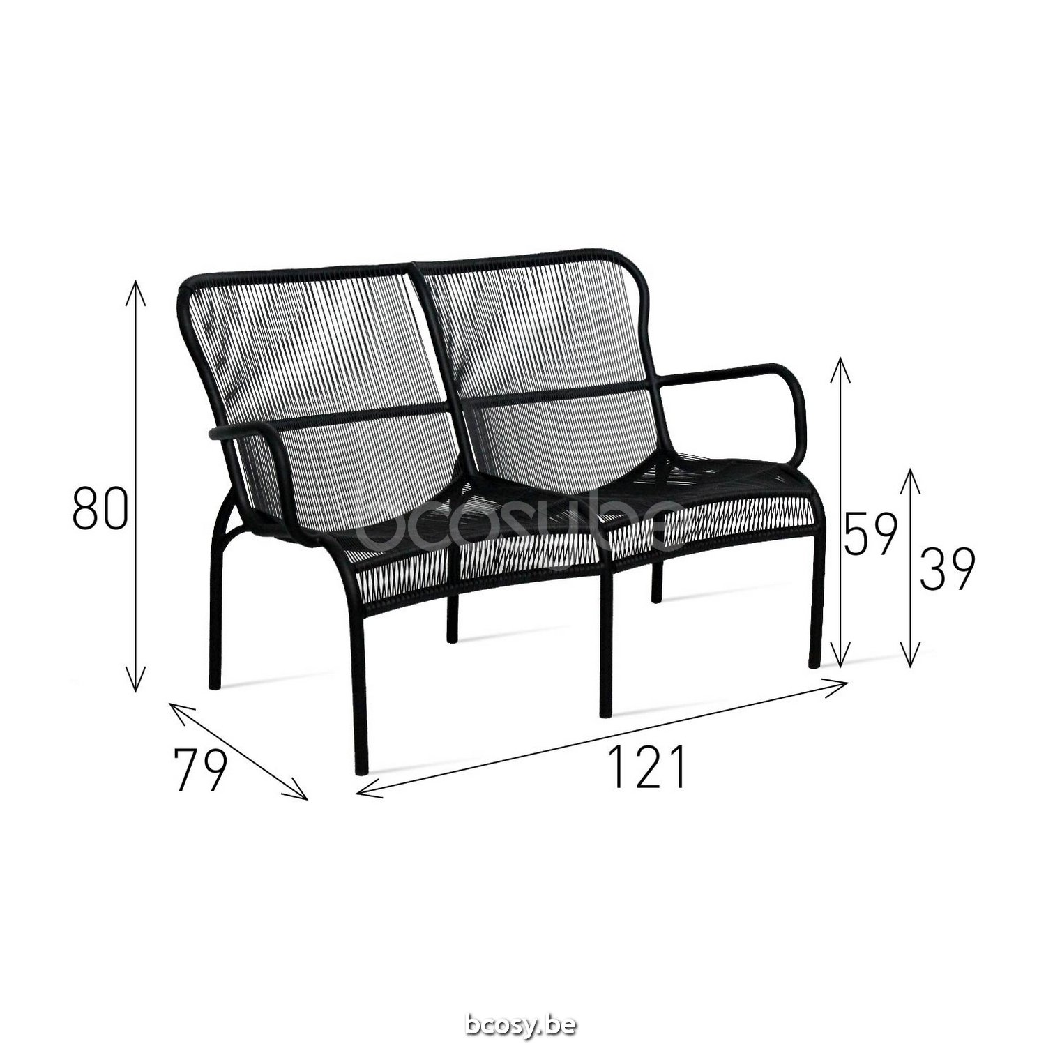 Afmetingen/Dimensions/Dimensionen: L=121 cm B=79 cm H=80 cm SH=39 cm AH=59 cm