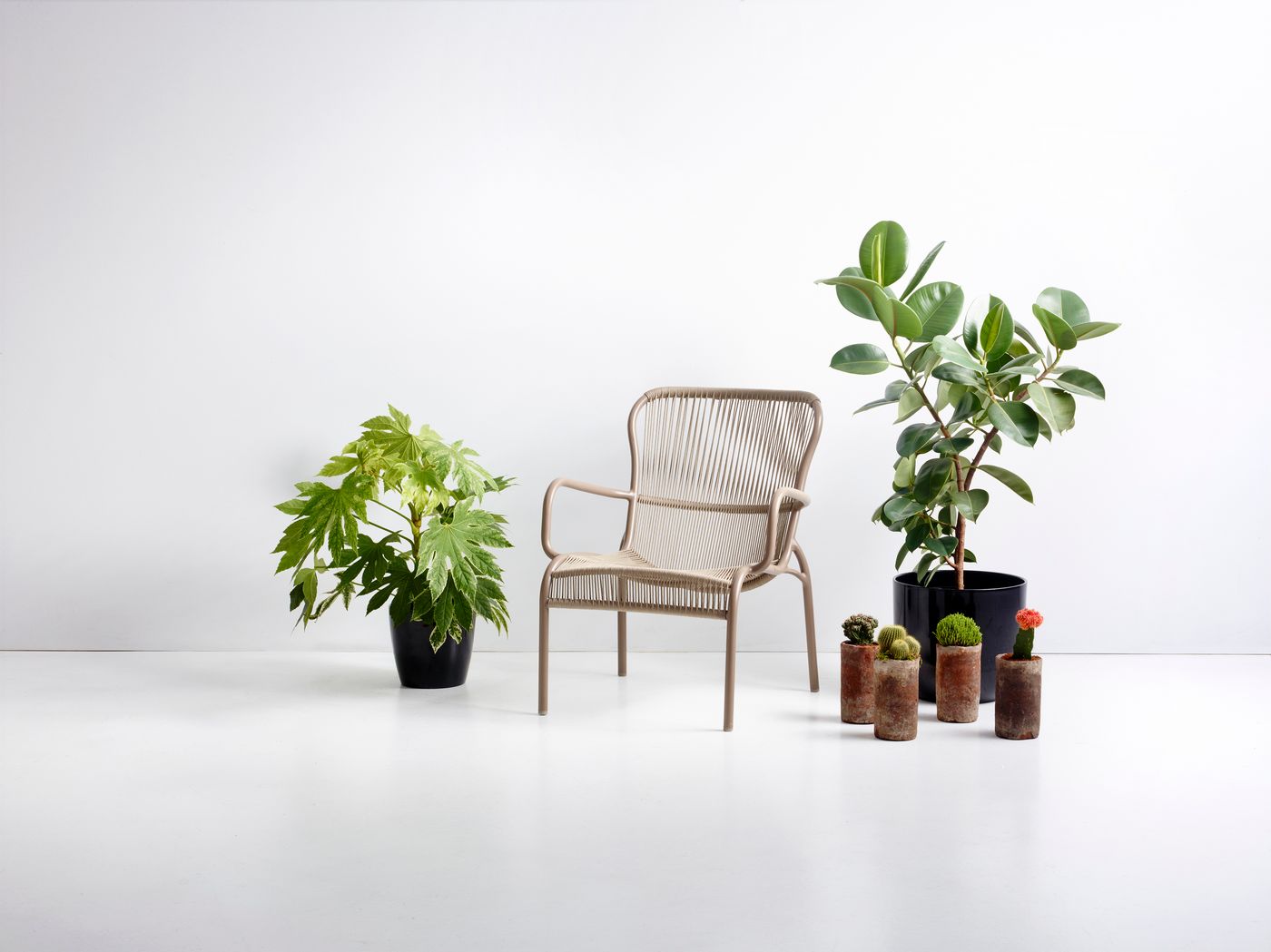 Vincent Sheppard Loop Lounge Stoel Taupe Aluminium frame Taupe Gehaakte Koord Polypropyleen