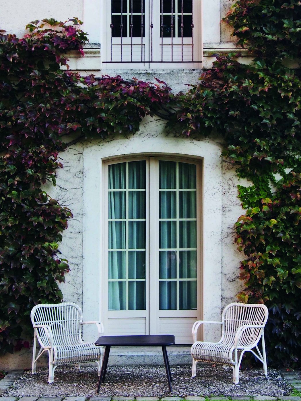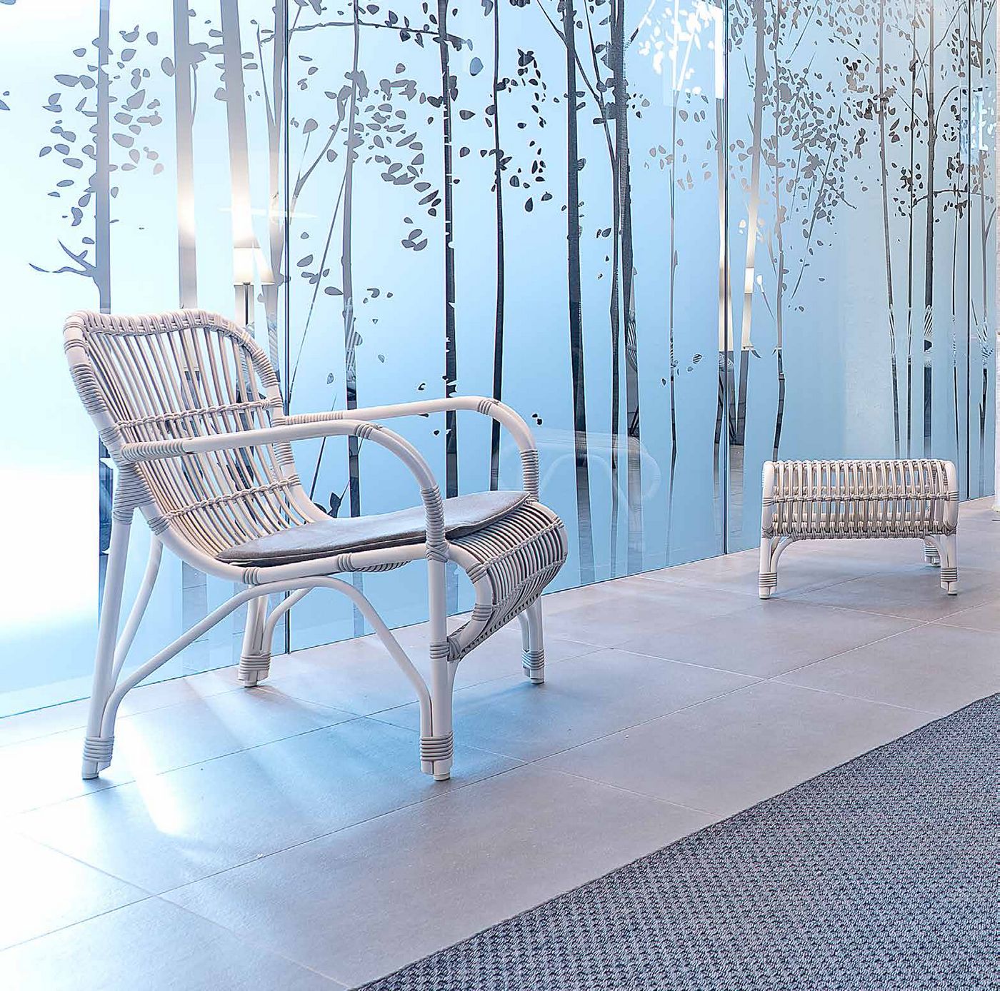 Français: Vincent Sheppard Lucy Lazy Fauteuil avec accoudoirs Cordon en osier Blanc cassé Polyéthylène
