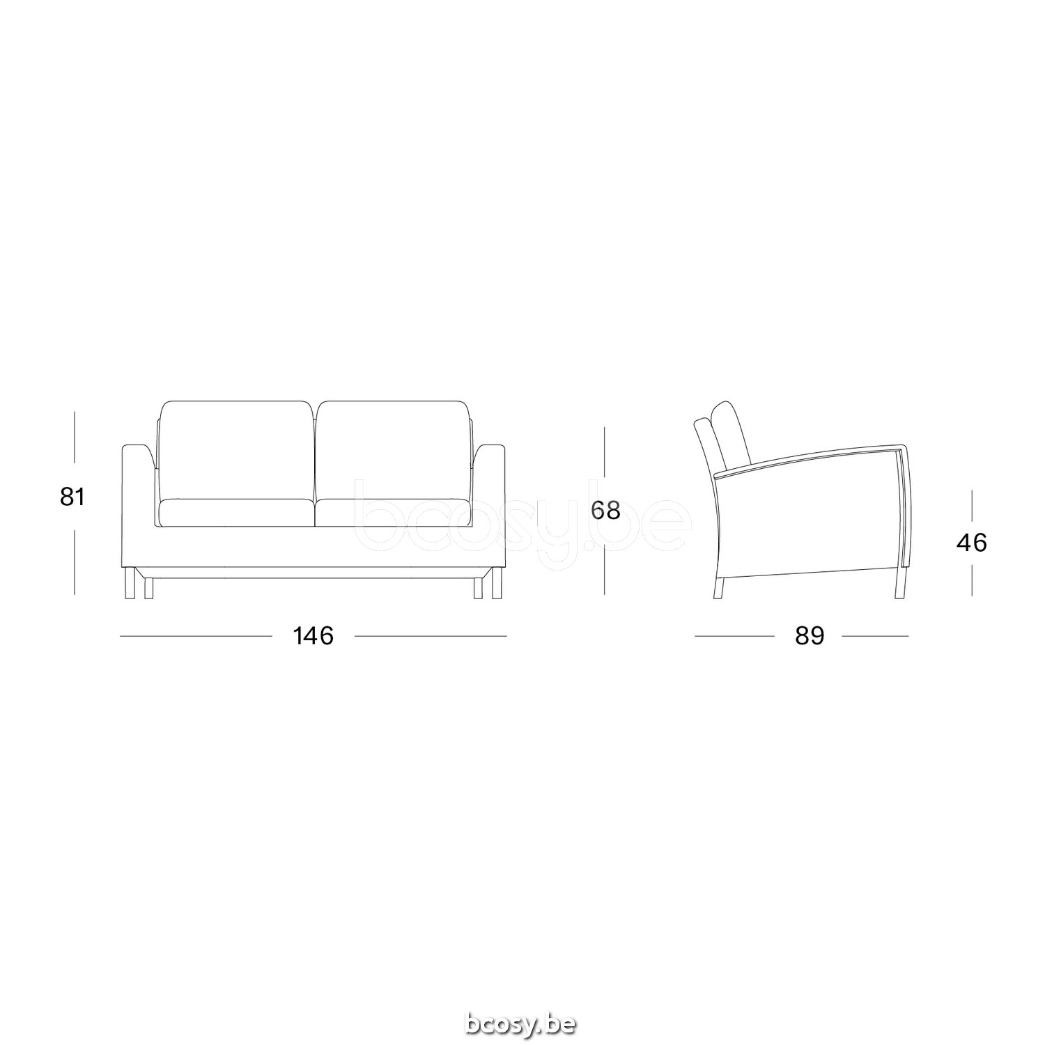 Afmetingen/Dimensions/Dimensionen: L=146 cm B=89 cm H=81 cm SH=46 cm AH=68 cm