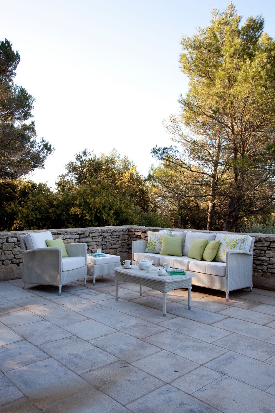 Matériel: Lloyd Loom traité pour une utilisation en extérieur sur un cadre en aluminium. Doit être stocké à l'intérieur par temps humide et froid. Mais ne convient qu'aux climats secs.