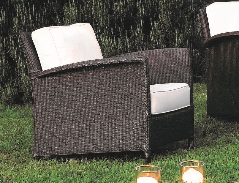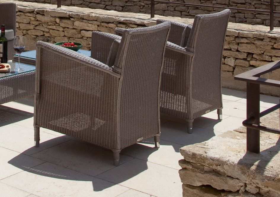 Material: Lloyd Loom treated for outdoor use on an aluminium frame. Should be stored indoors during humid and cold weather. But only suitable for dry climates.