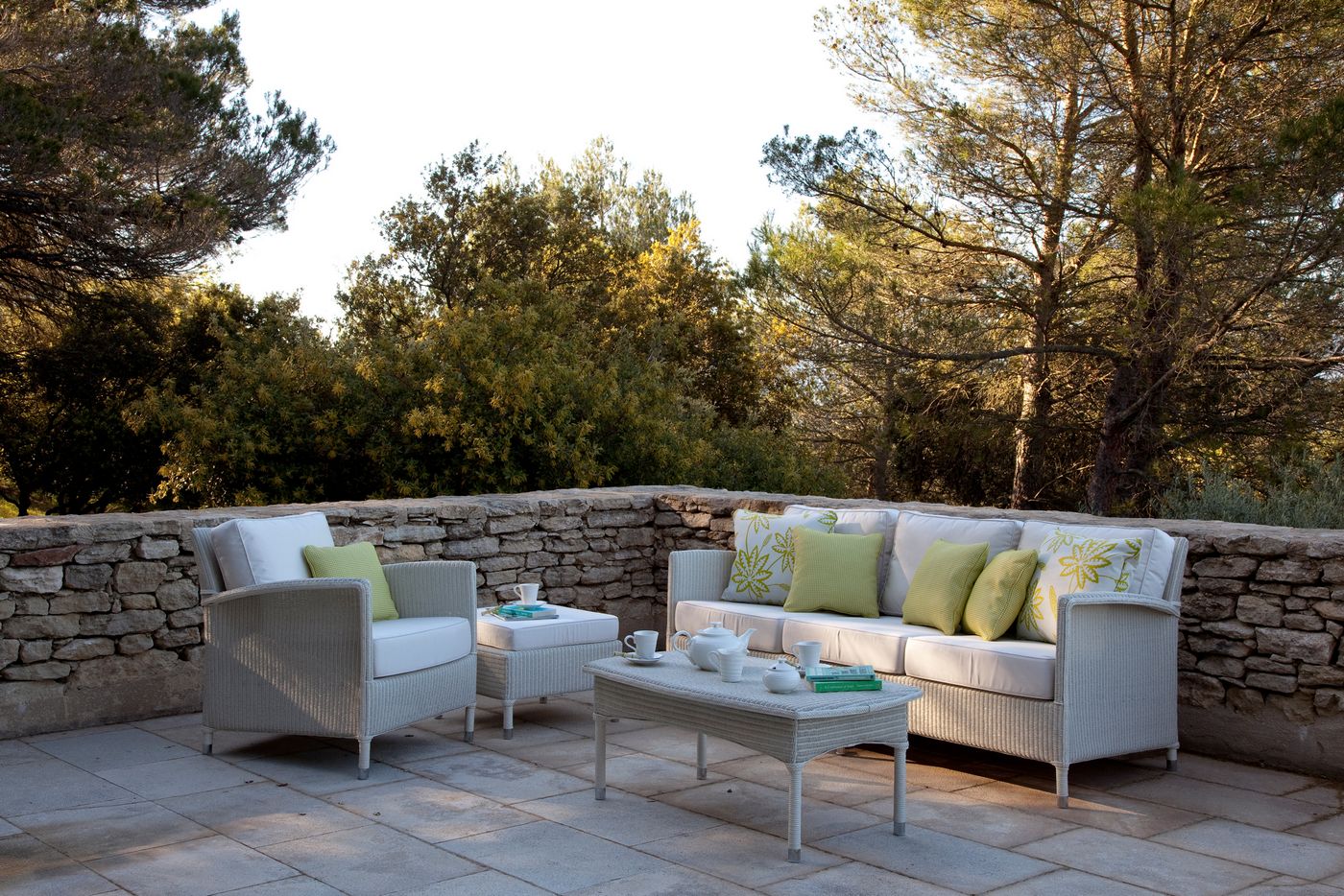 Matériel: Lloyd Loom traité pour une utilisation en extérieur sur un cadre en aluminium. Doit être stocké à l'intérieur par temps humide et froid. Mais ne convient qu'aux climats secs.