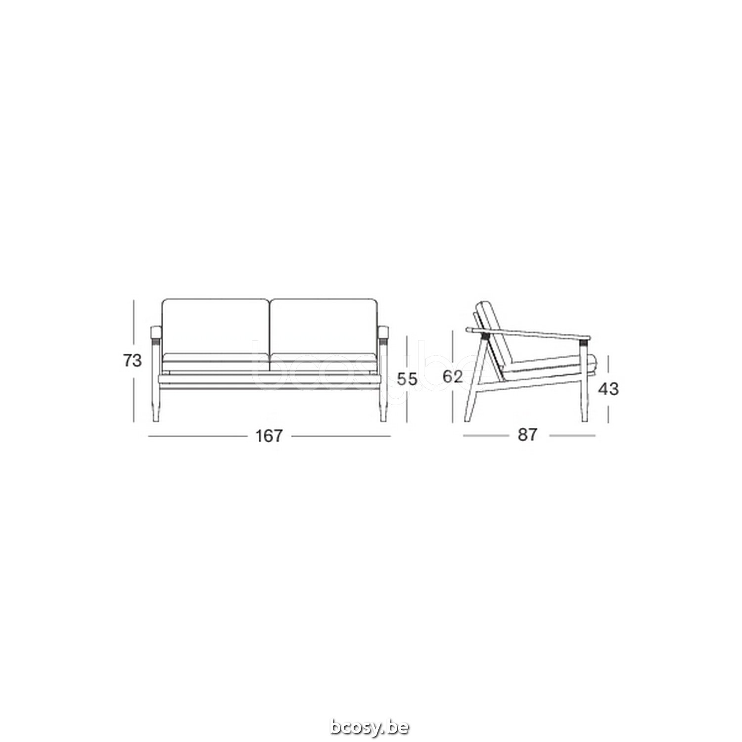 Afmetingen/Dimensions/Dimensionen: L=167 cm B=87 cm H=73 cm SH=43 cm AH=55 cm