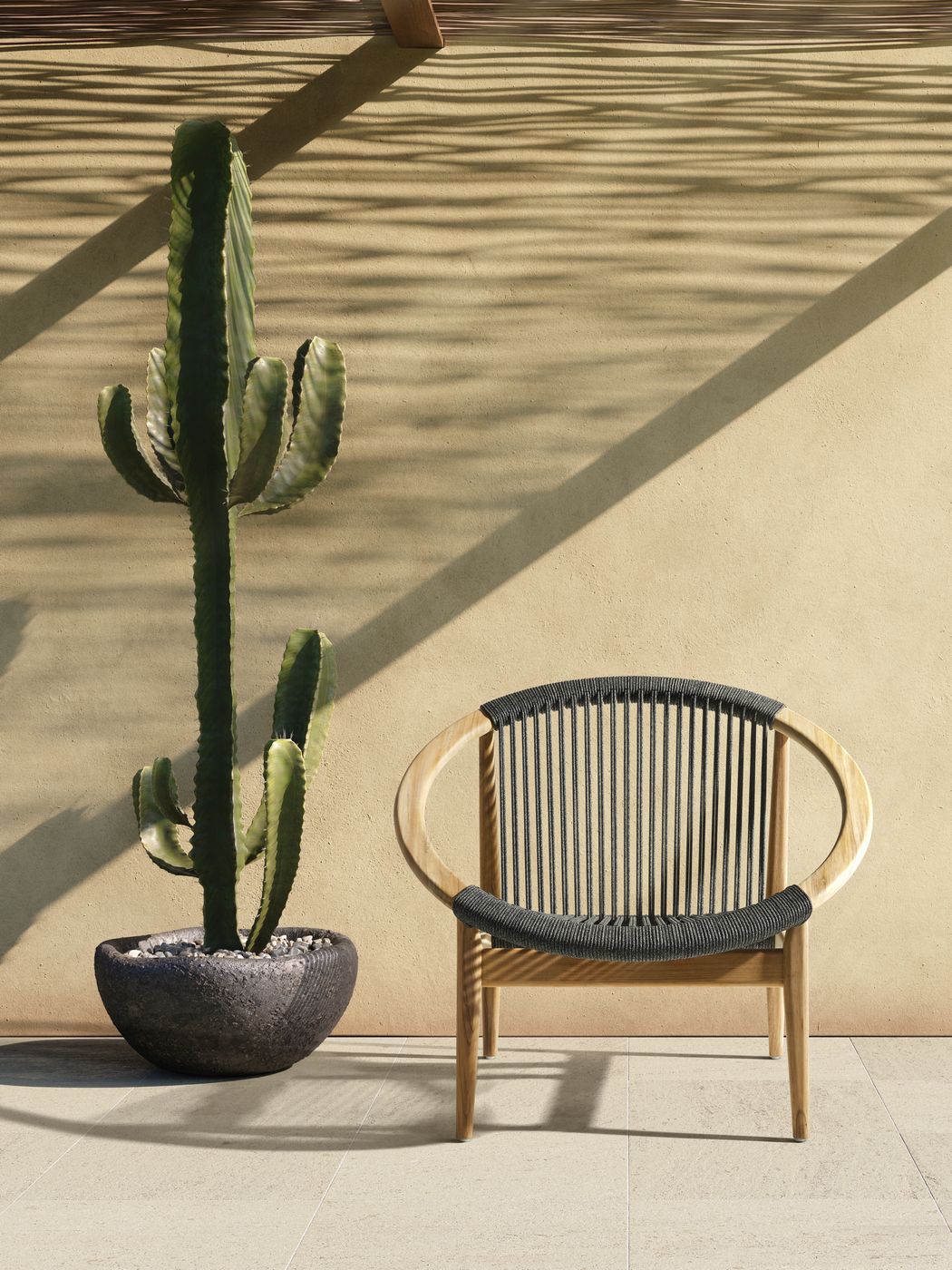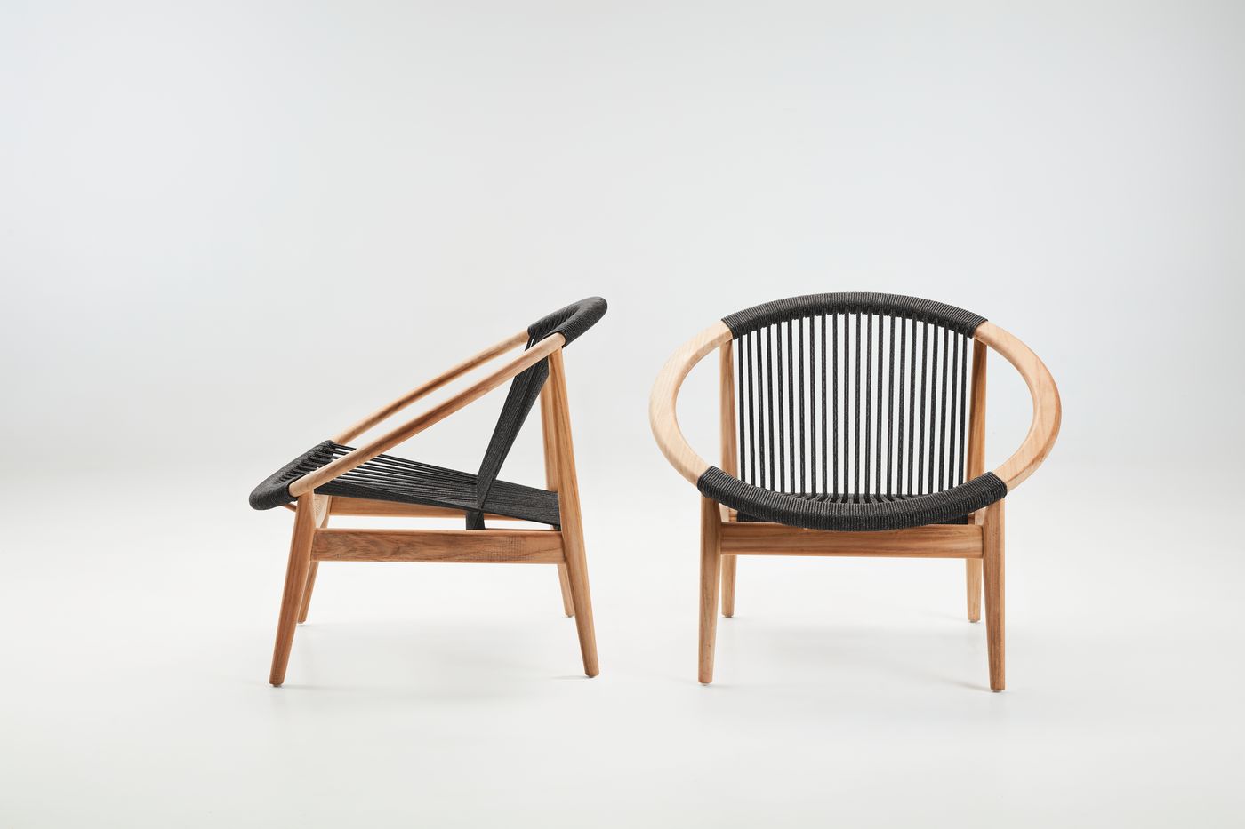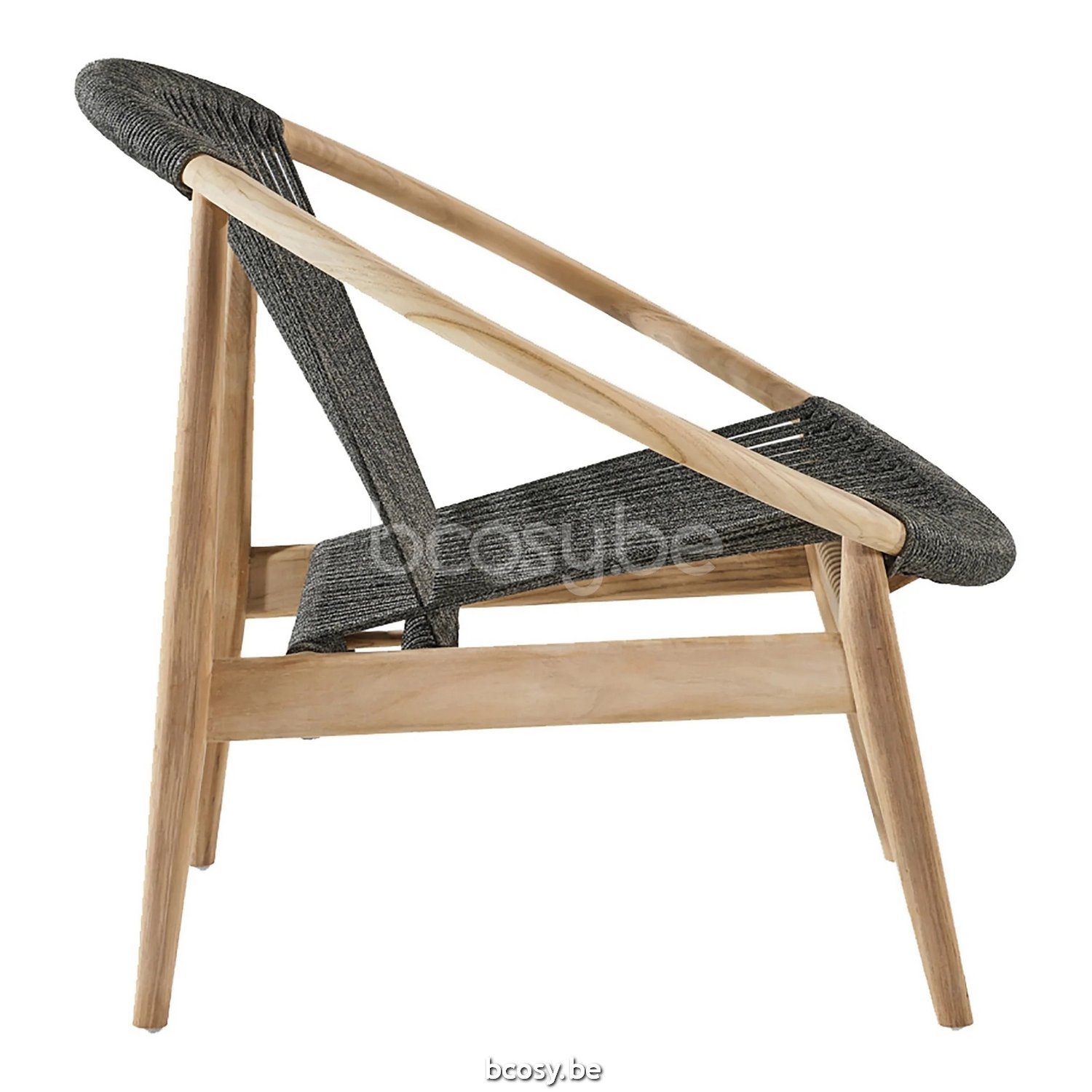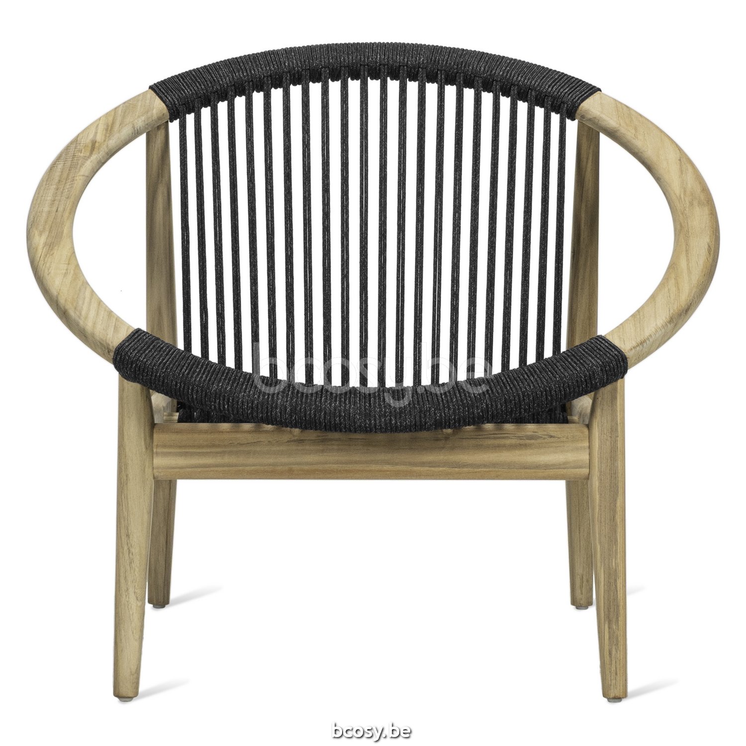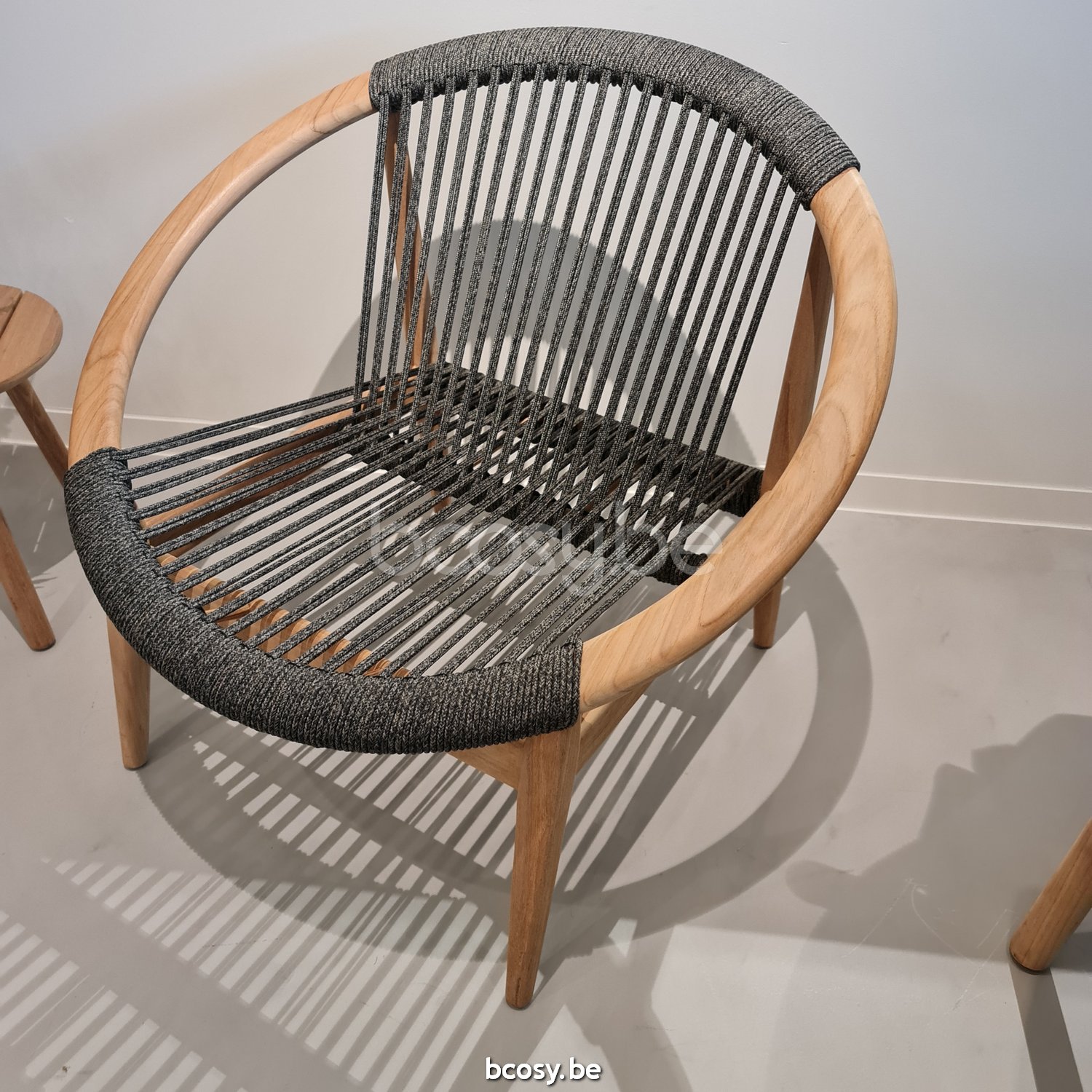English: Vincent Sheppard Frida Lounge Chair Untreated Teak frame Anthracite-charcoal Rope Polypropylene