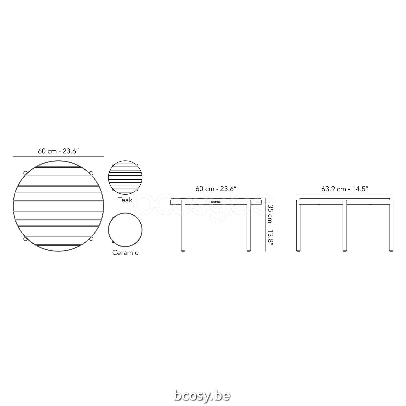 Materiaal: Aluminium gepoederlakte structuur en keramisch tafelblad.