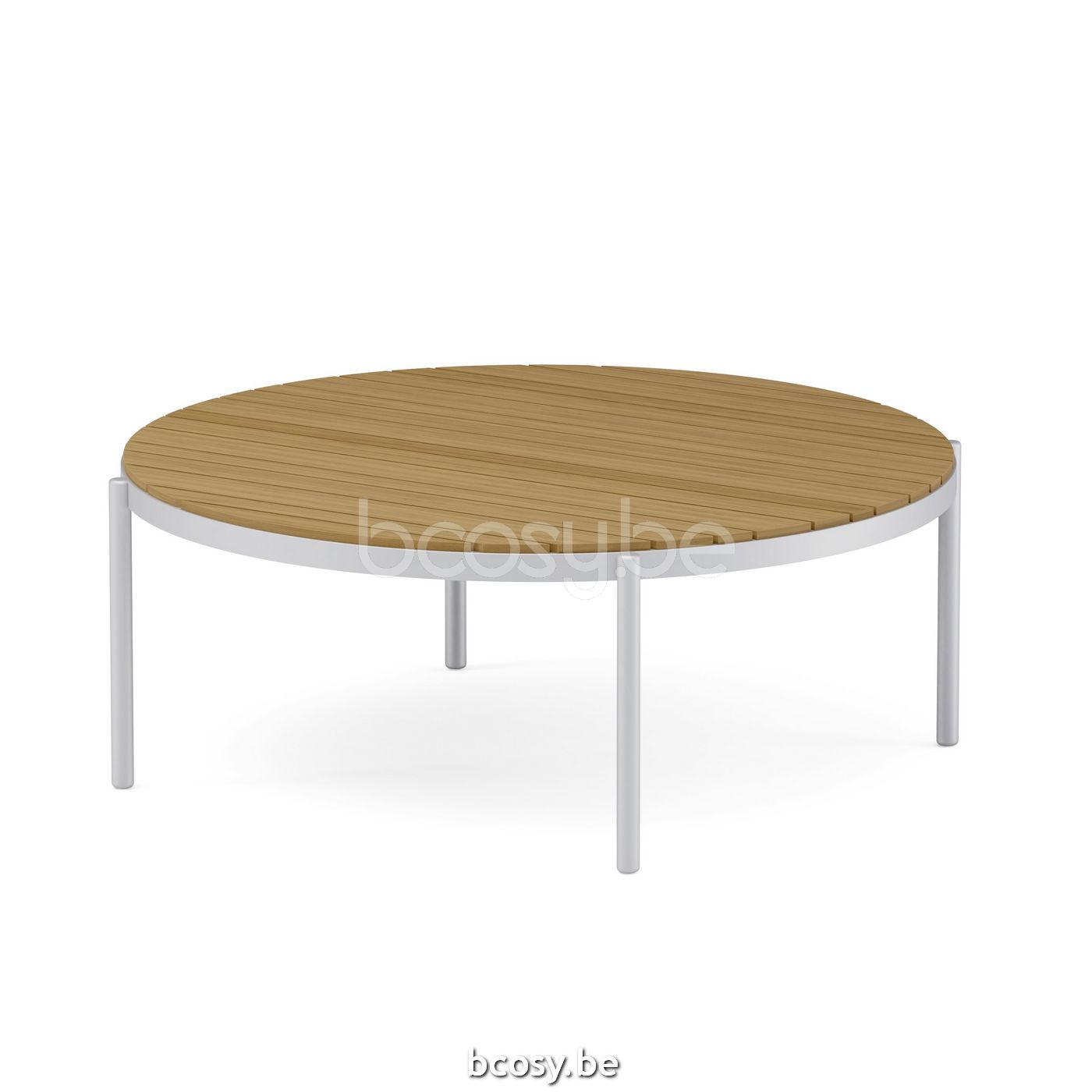 Jardinico VOLTE Ronde Salontafel Vernestbaar Ø90 Wit Gepoederlakte Aluminium Teak