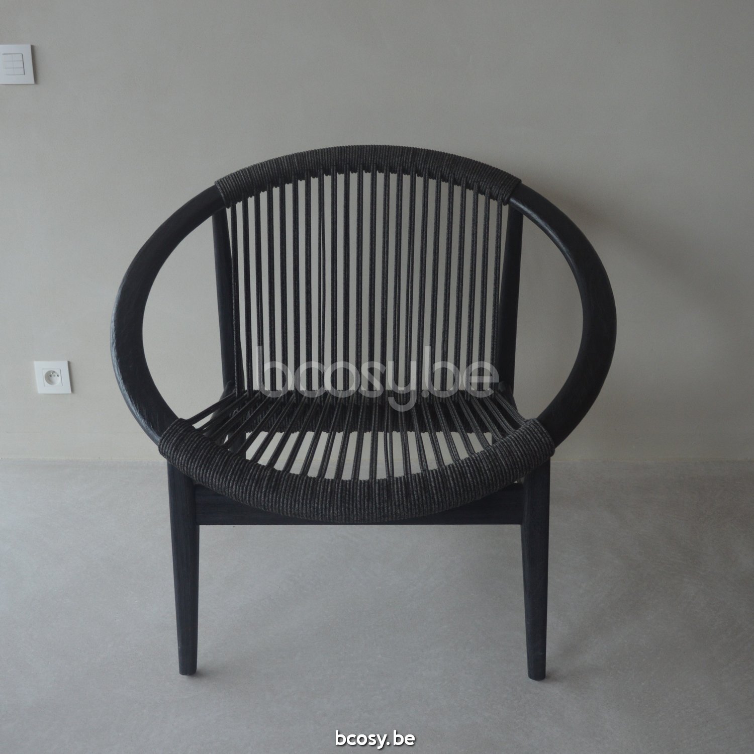 Deutsch: Vincent Sheppard Frida Lounge Stuhl Rahmen aus Gebürstetes Schwarz Teakholz Onyx Schwarz Seil Polypropylen
