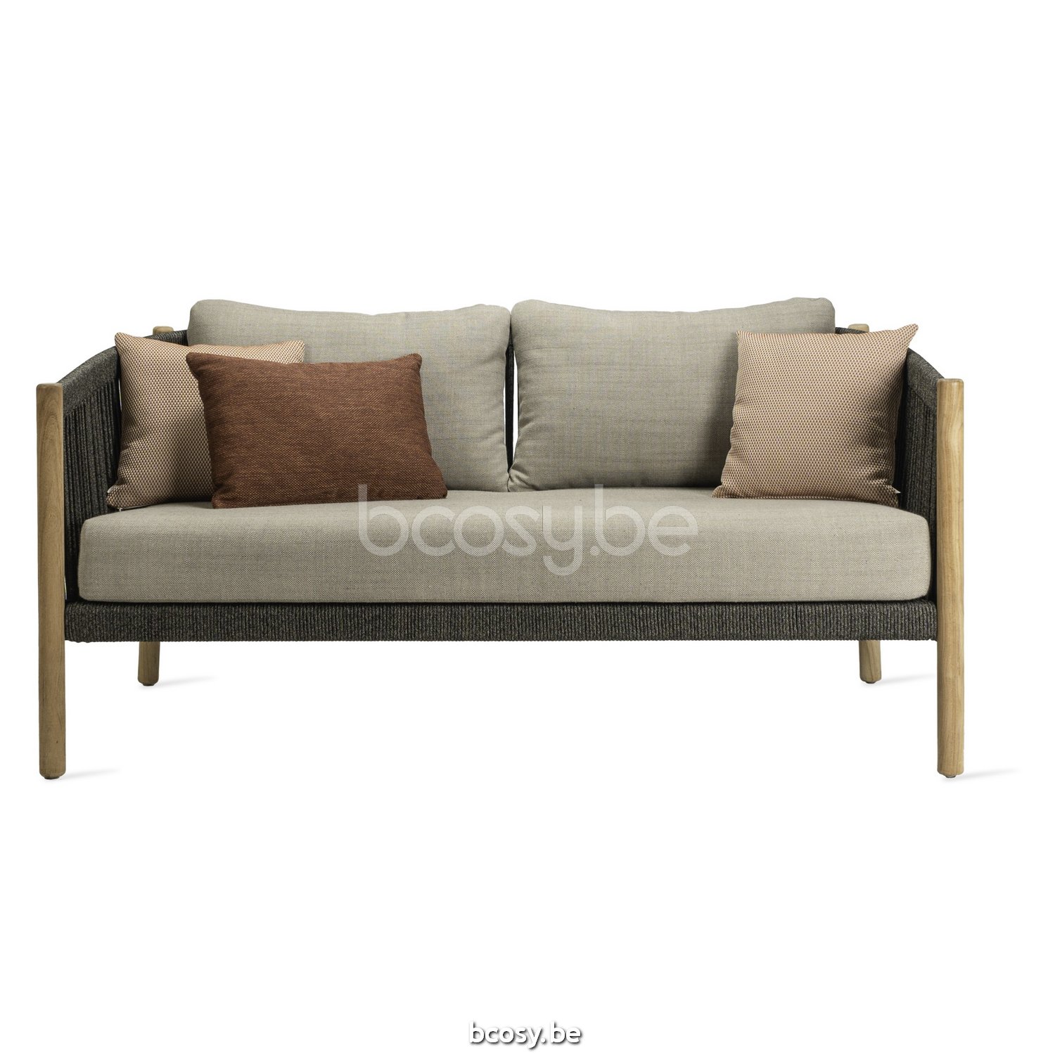 Français: Vincent Sheppard Lento Canapé lounge 2.5s Cadre en Teck non traité Corde Anthracite-Charbon Polypropylène