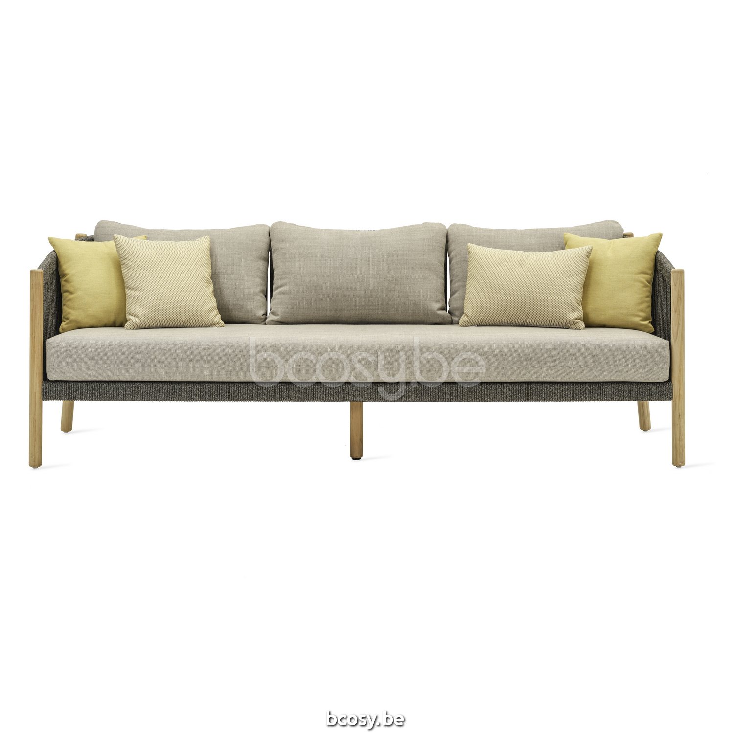 English: Vincent Sheppard Lento Lounge Sofa 3s Untreated Teak frame Anthracite-charcoal Rope Polypropylene