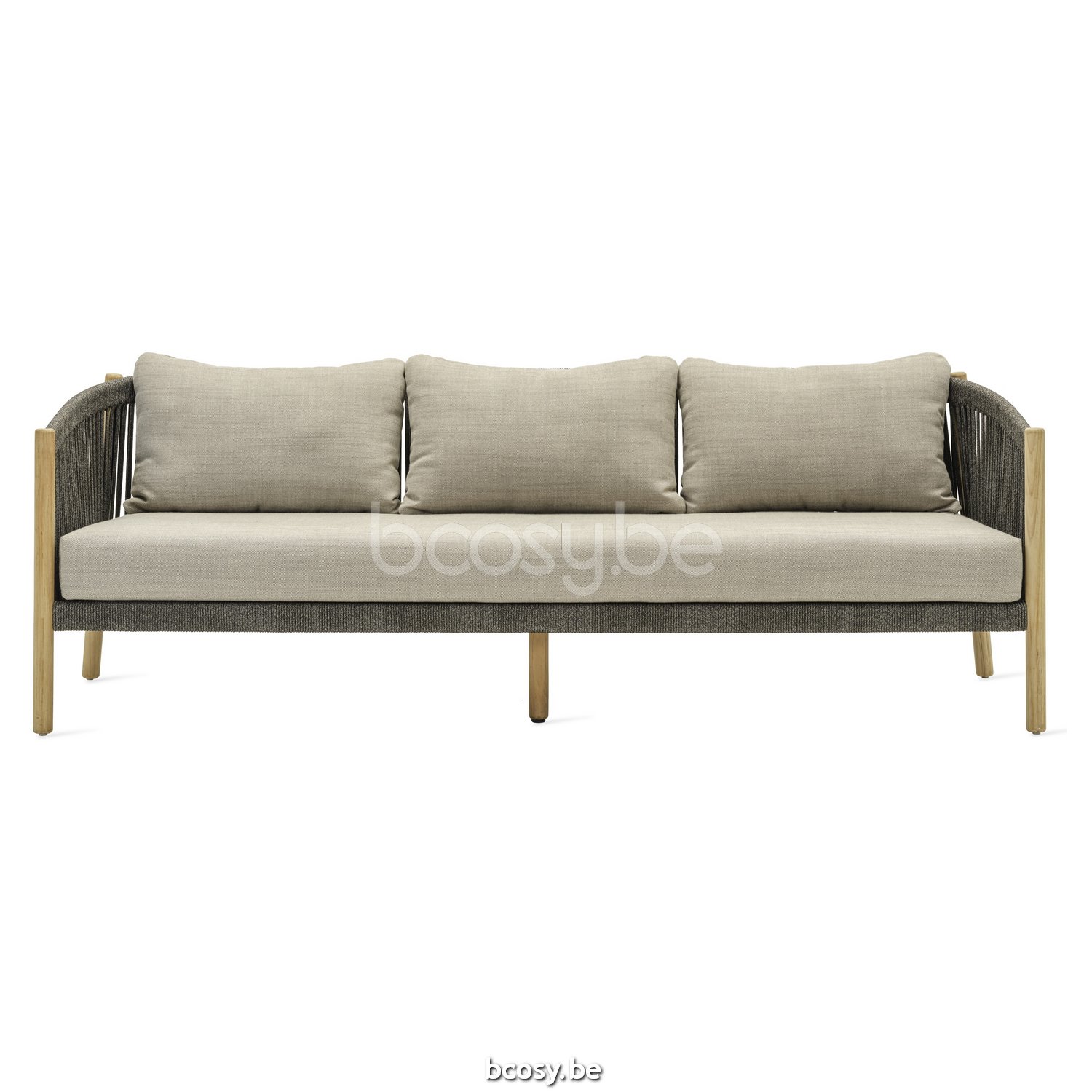 Vincent Sheppard Lento Loungesofa 3s Onbehandeld teakhout frame Antraciet-Steenkool Touw Polypropyleen