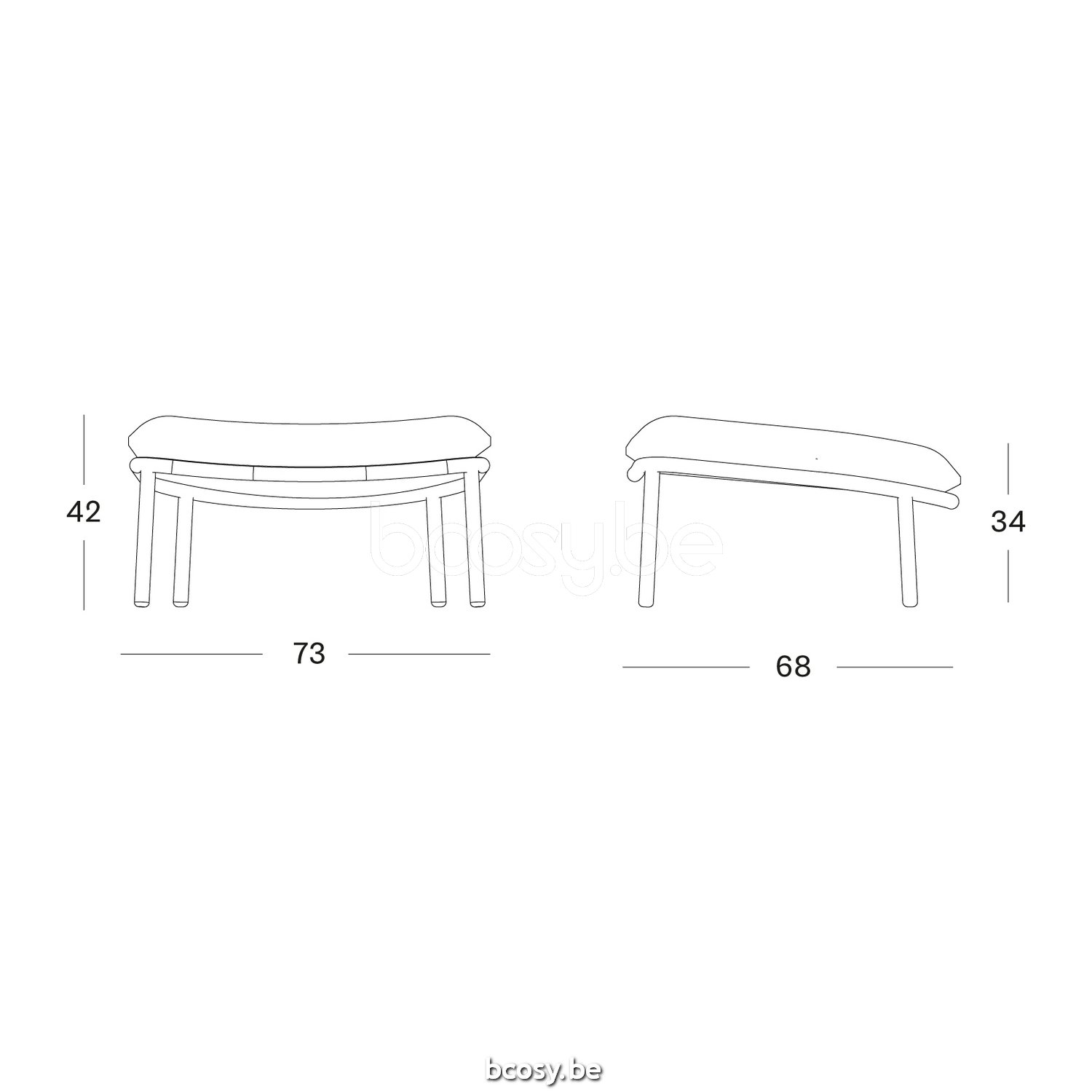 Afmetingen/Dimensions/Dimensionen: L=73 cm B=68 cm H=42 cm SH=34 cm