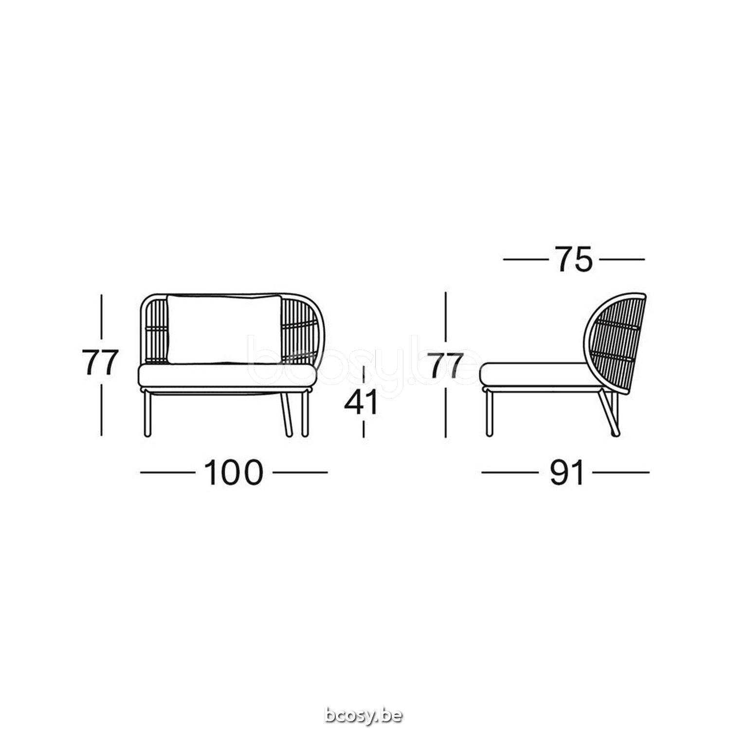 Afmetingen/Dimensions/Dimensionen: L=100 cm B=91 cm H=77 cm SH=41 cm