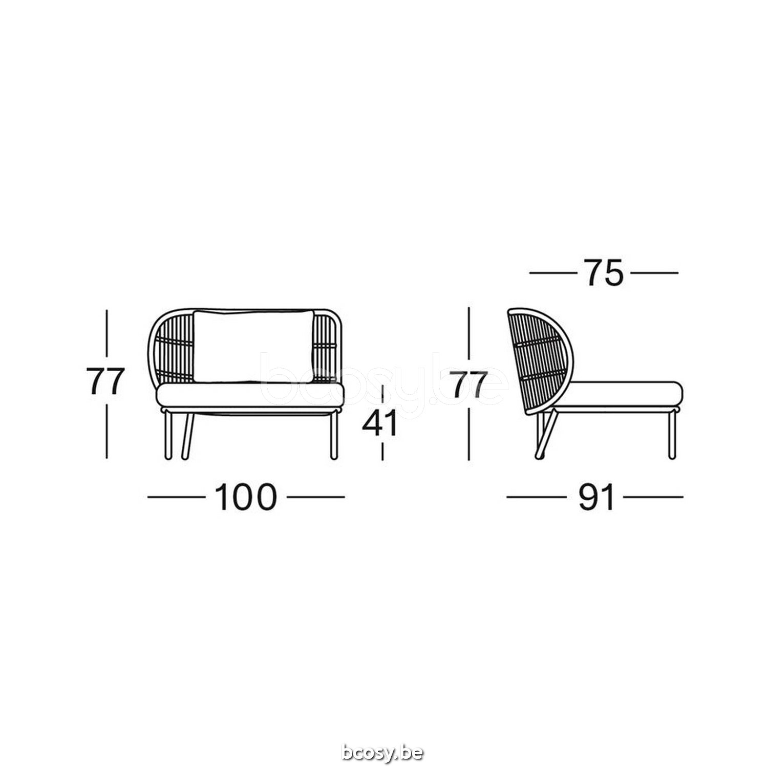 Afmetingen/Dimensions/Dimensionen: L=100 cm B=91 cm H=77 cm SH=41 cm