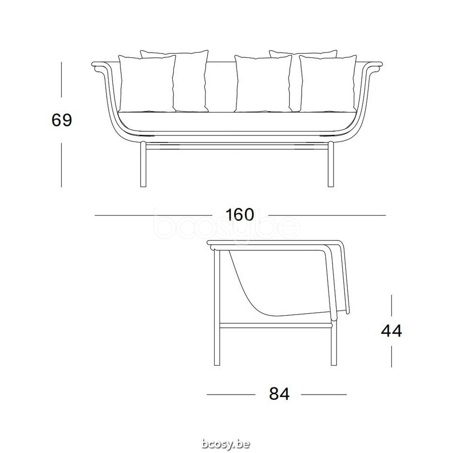 Afmetingen/Dimensions/Dimensionen: L=160 cm B=84 cm H=69 cm SH=44 cm AH=69 cm