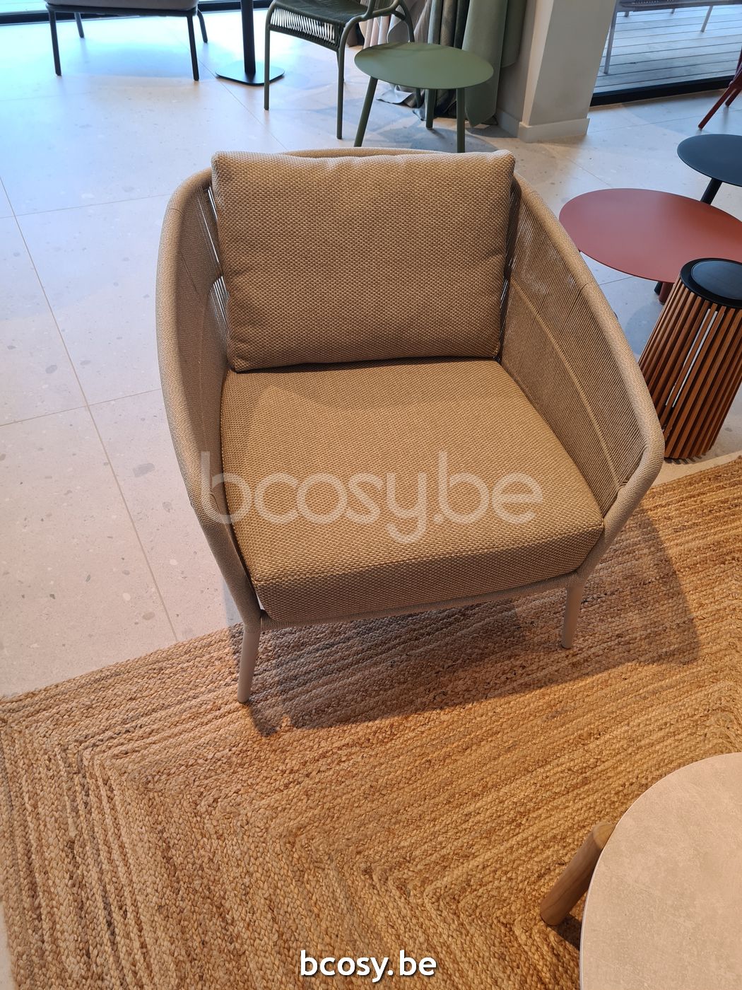 English: Vincent Sheppard Akari Lounge Chair Dune White Aluminium frame Flax Rope Polypropylene