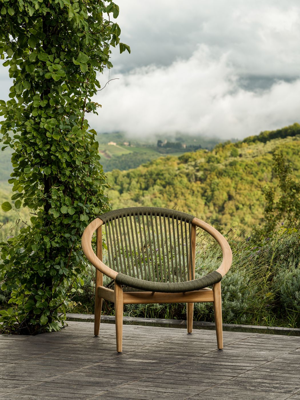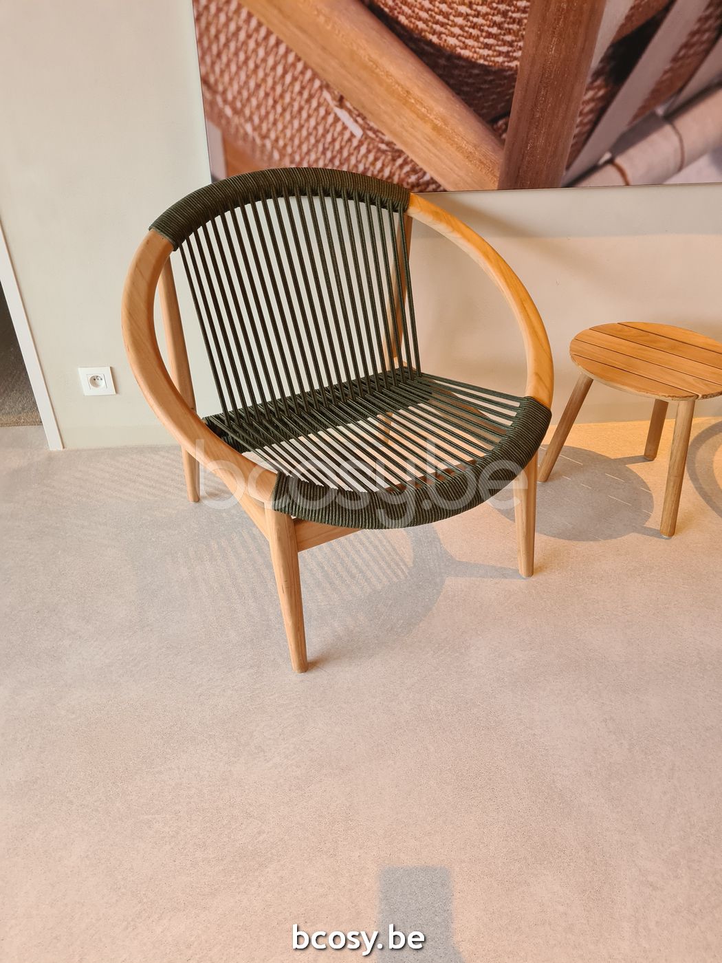 English: Vincent Sheppard Frida Lounge Chair Untreated Teak frame Dark Green Rope Polypropylene