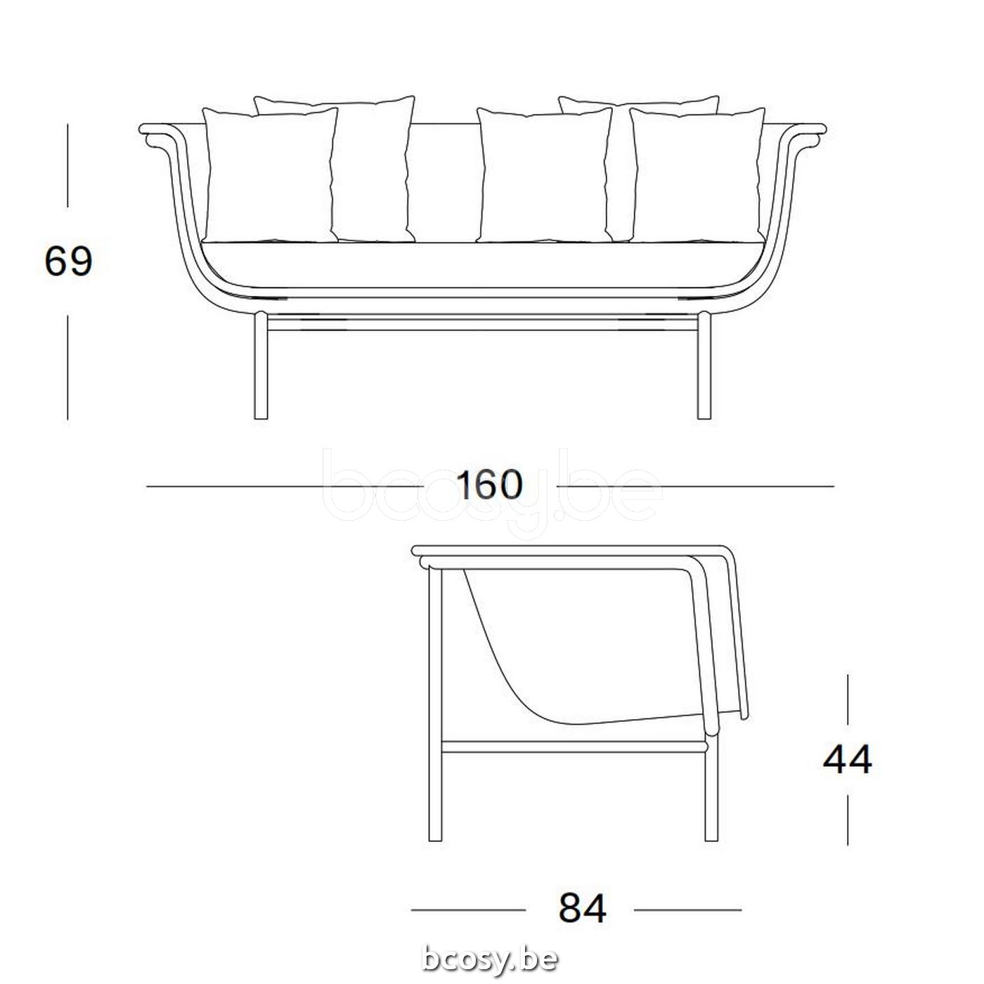Afmetingen/Dimensions/Dimensionen: L=160 cm B=84 cm H=69 cm SH=44 cm AH=69 cm