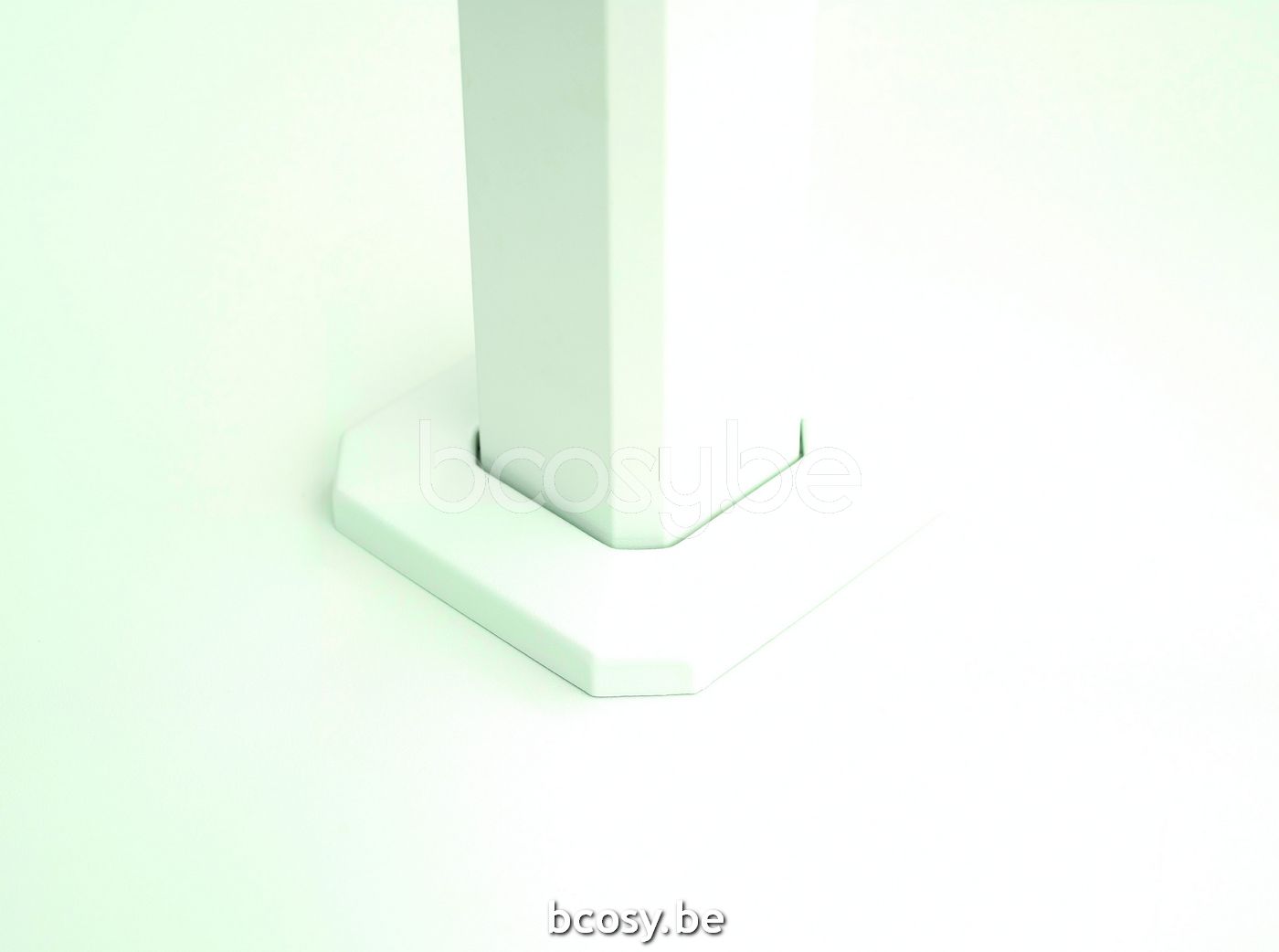 Pied de parasol: Tôle d'acier galvanisé à chaud, thermolaqué. Inclus à l'achat du parasol. Socle avec 4 roues qui tournent à 360°, chacune avec des freins pour fixer le parasol. Le socle a la même couleur que le mât. Un socle en charcoal est fournie pour un mât en cappuccino et en alu teck.