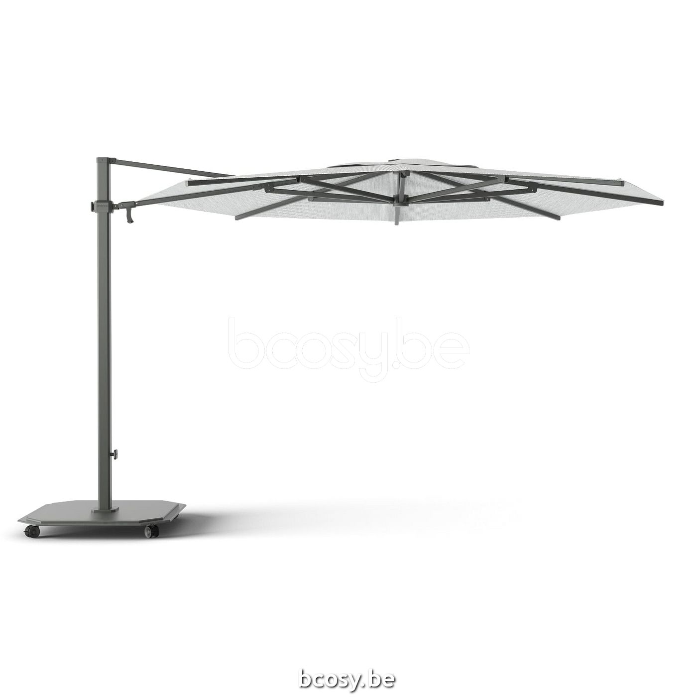 Jardinico CARACTERE JCP303 Ø350 Ronde Vrijhangende Zwevende Parasol Met Vrijstaande Mastpaal Ø3,5 Antraciet-charcoal-charcola Gepoederlakt Aluminium Mast-paal| Parasoldoek Ice Sunbrella Plus Marine