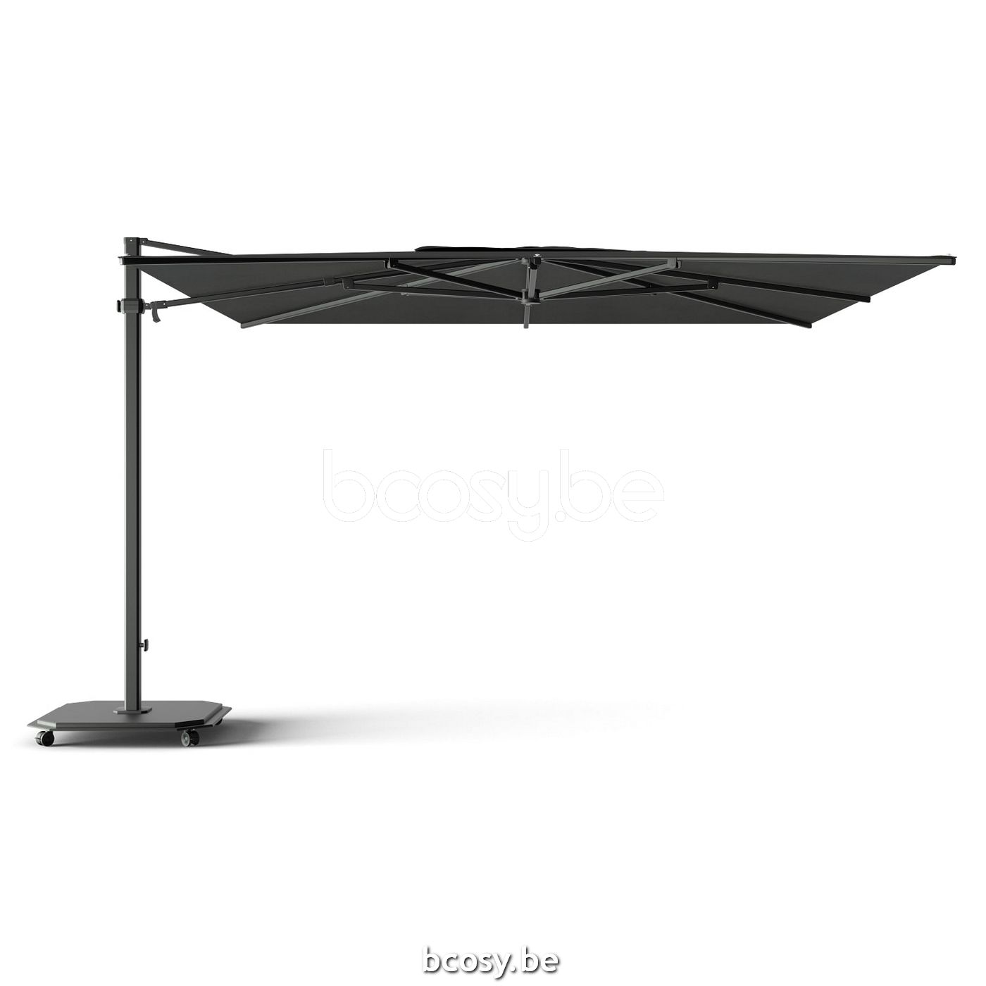 Jardinico CARACTERE JCP401 370x370 Vierkante Vrijhangende Zwevende Parasol Met Vrijstaande Mastpaal 3,7x3,7 Zwart Gepoederlakte Aluminium Mast-paal| Parasoldoek Pitch Sunbrella Plus Marine cat3