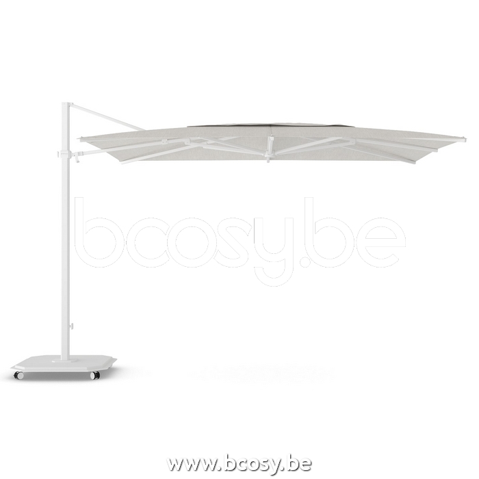 Jardinico CARACTERE JCP404 250B x350 Rechthoekige Vrijhangende Zwevende Parasol Met Vrijstaande Mastpaal 2,5x3,5 UNIEK MODEL Wit Gepoederlakte Aluminium Mast-paal| Parasoldoek Cotton Sunbrella Plus Marine cat3