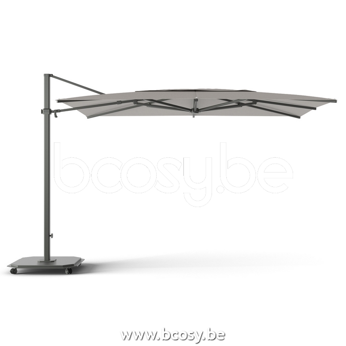 Jardinico CARACTERE JCP404 250B x350 Rechthoekige Vrijhangende Zwevende Parasol Met Vrijstaande Mastpaal 2,5x3,5 UNIEK MODEL Antraciet-charcoal-charcola Gepoederlakt Aluminium Mast-paal| Parasoldoek Umber Sunbrella Plus Marine cat3