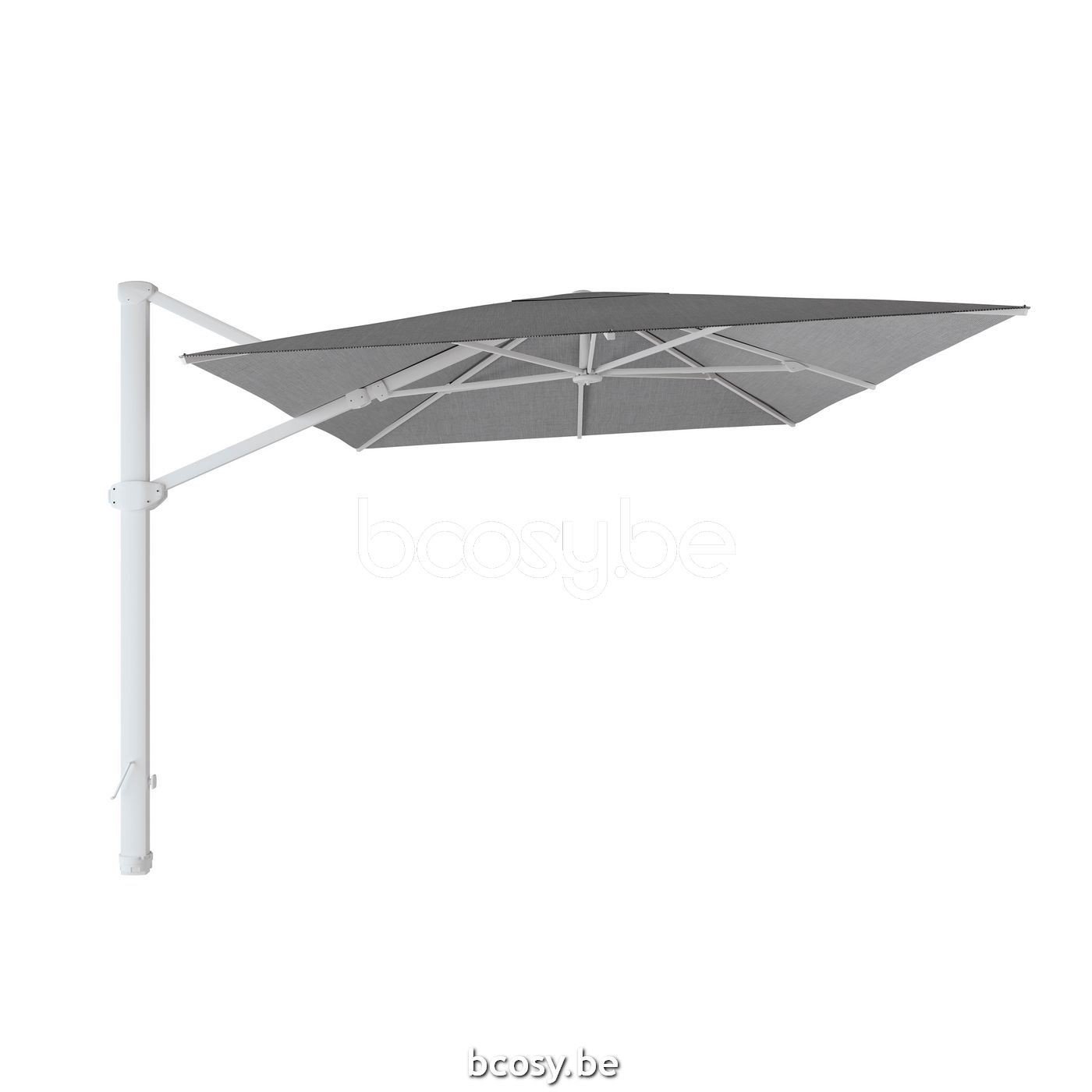 Model: Vrijhangende parasol met opendraaier. Mast en baleinen zijn van gepoederlakt aluminium.