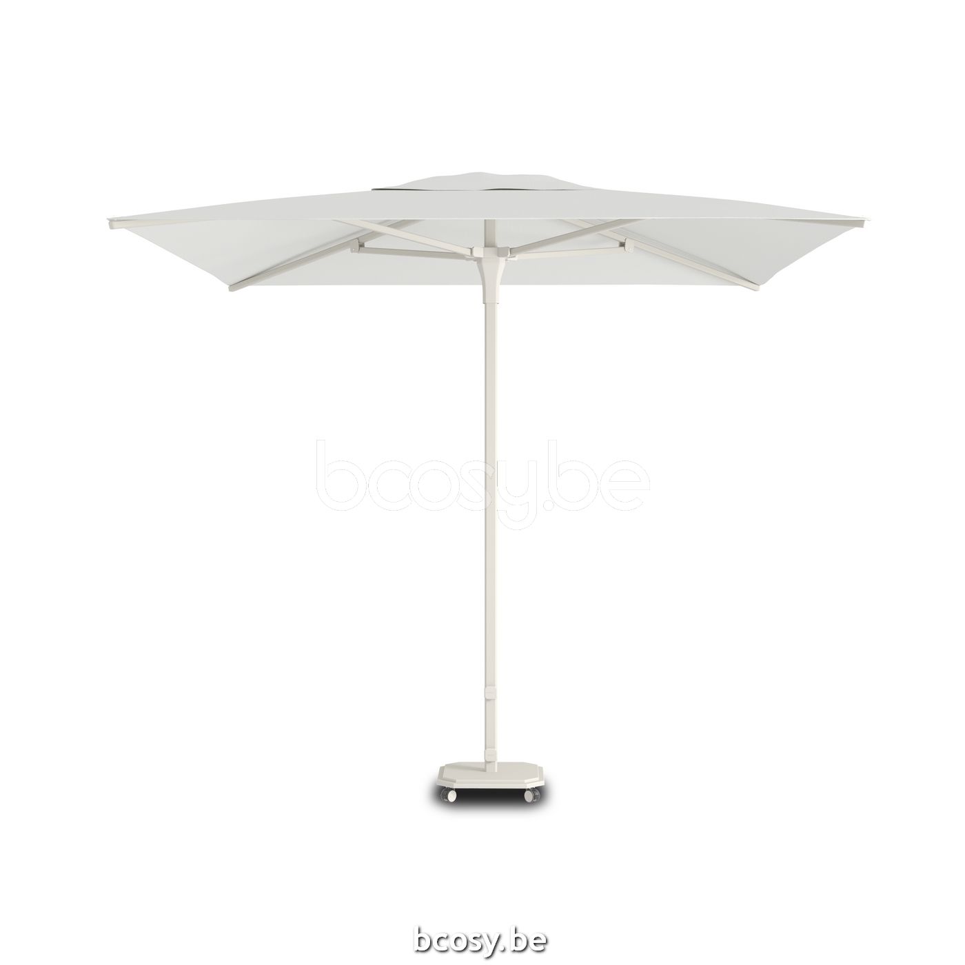 Jardinico CARACTERE JCP102 230x230 Vierkante Centrale Middenstam Parasol Met Centrale Mastpaal 2,3x2,3 Linnenkleur Gepoederlakt Aluminium Mast-paal| Parasoldoek Pearl Sunbrella Plus Marine cat3