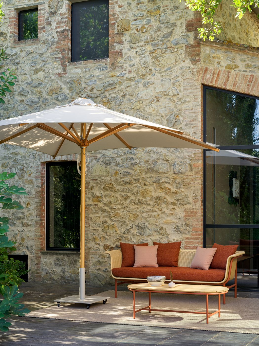 Material: Frame in clear varnished eucalyptus. Canopy standard with Canvas S0606 or Sunbrella Solids on demand.