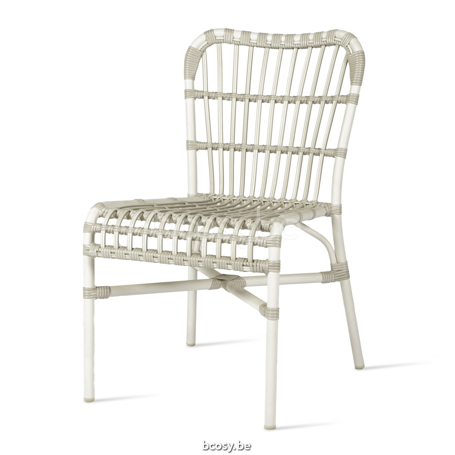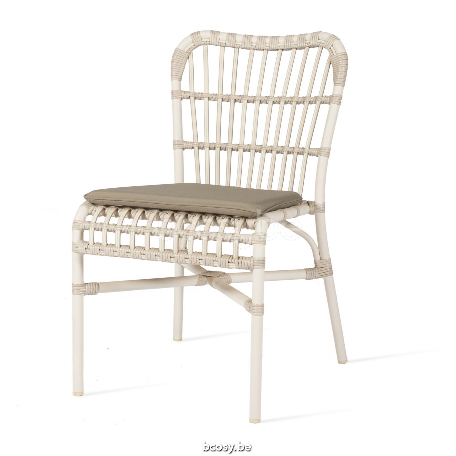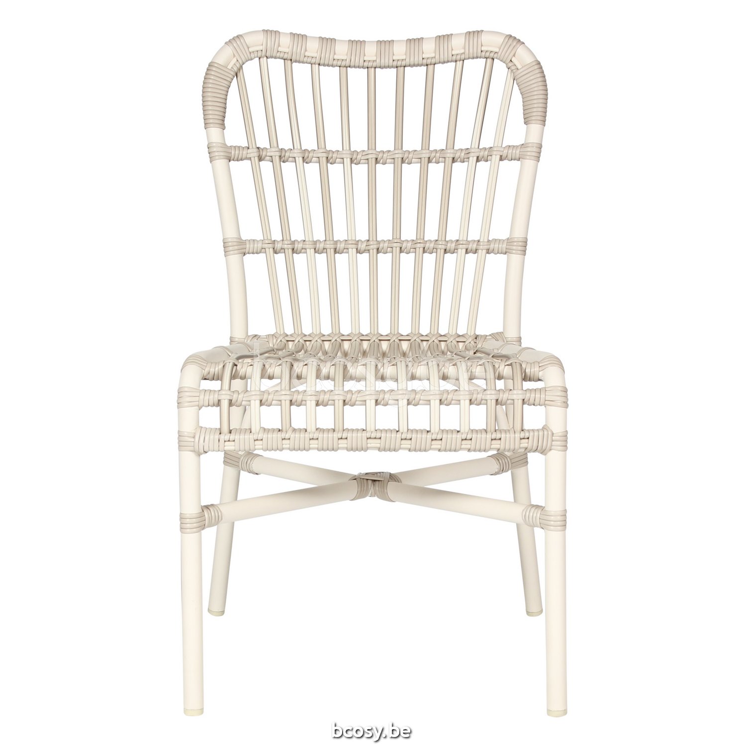 Materiaal: Polyethyleen vlechtwerk op een aluminium frame. Stapelbaar (max. 4 stoelen / voorzichtig behandelen om beschadiging te voorkomen).