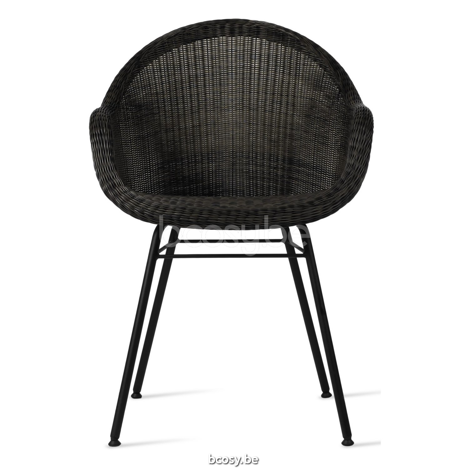 Materiaal: Polyethyleen wicker vlechtwerk op een aluminium frame en een epoxy en gegalvaniseerd zwart gepoedercoat stalen onderstel.
