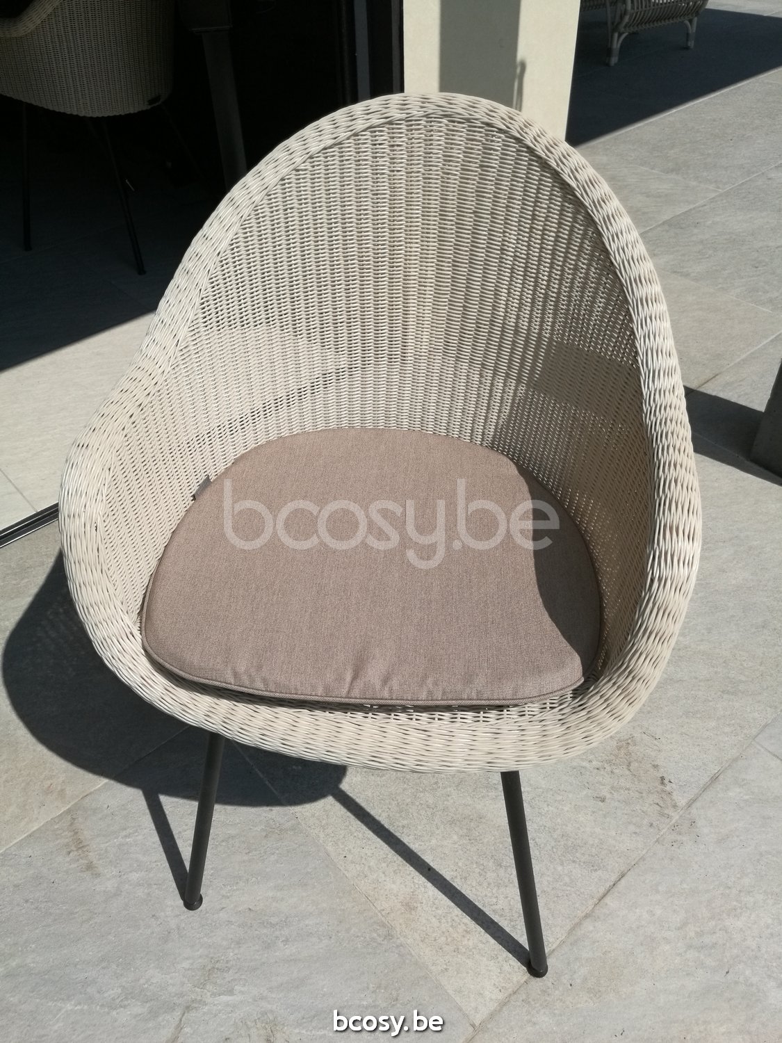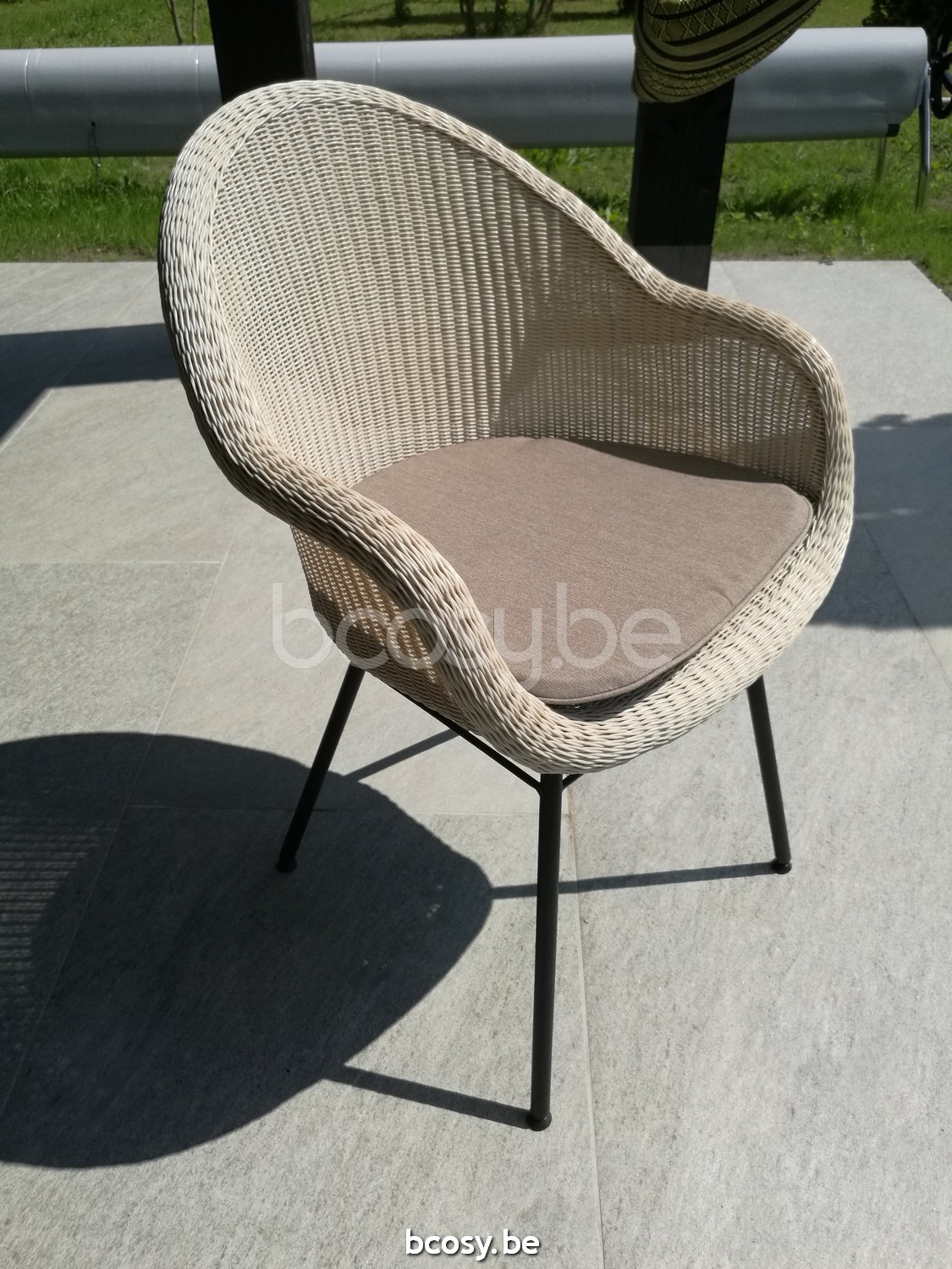Materiaal: Polyethyleen wicker vlechtwerk op een aluminium frame en een epoxy en gegalvaniseerd zwart gepoedercoat stalen onderstel.