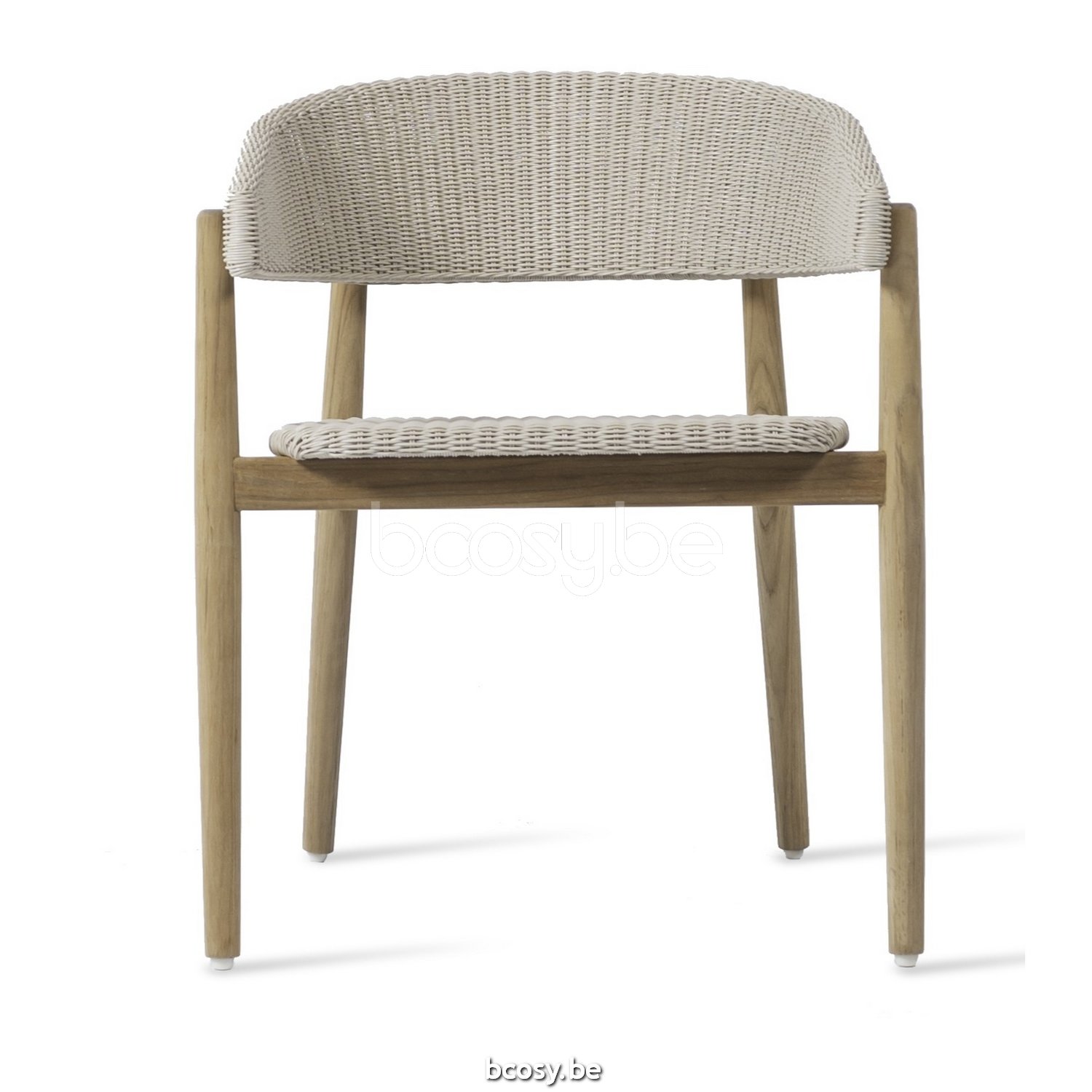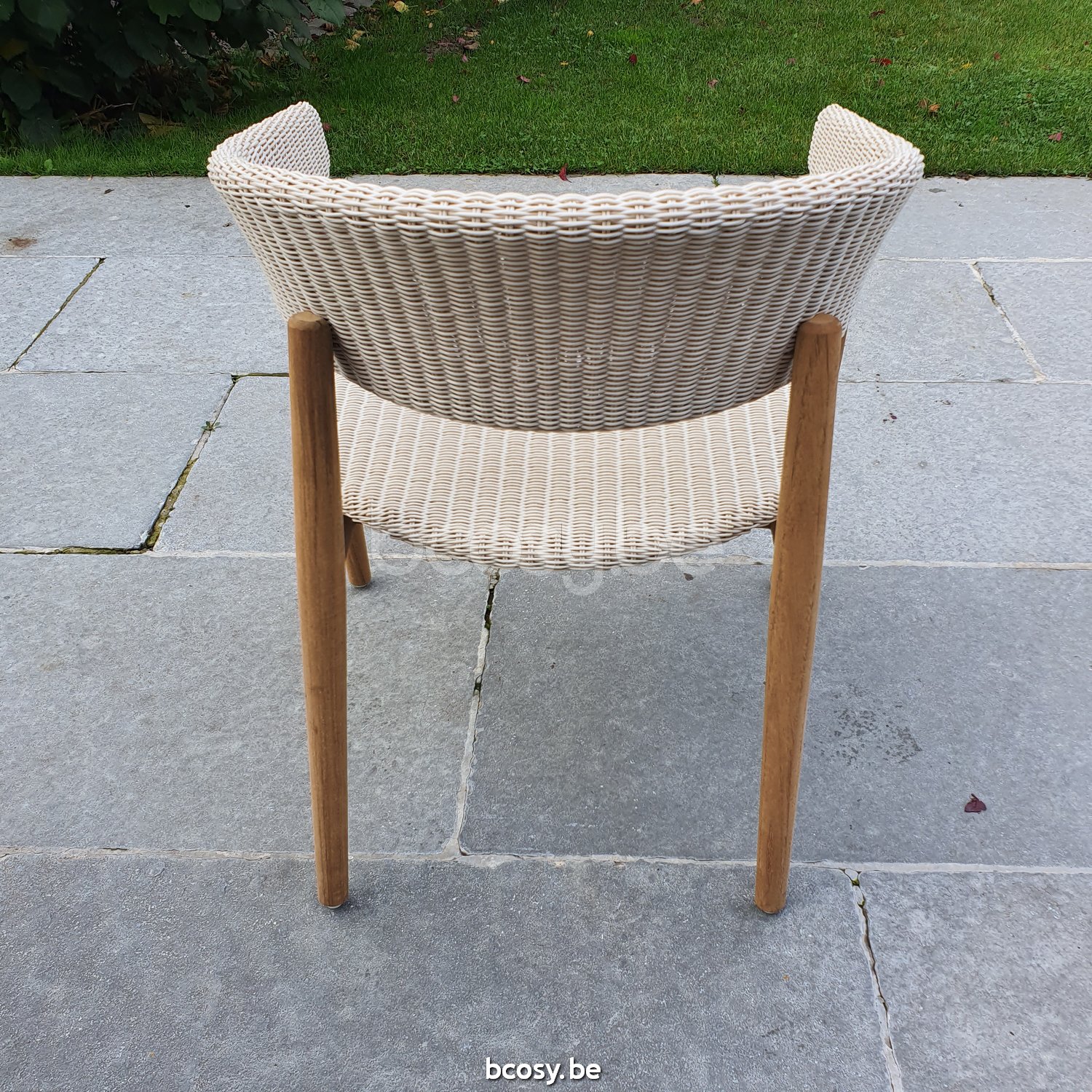 English: Vincent Sheppard Mona Dining Chair Untreated Teak frame Old Lace Wicker Polyethylene
