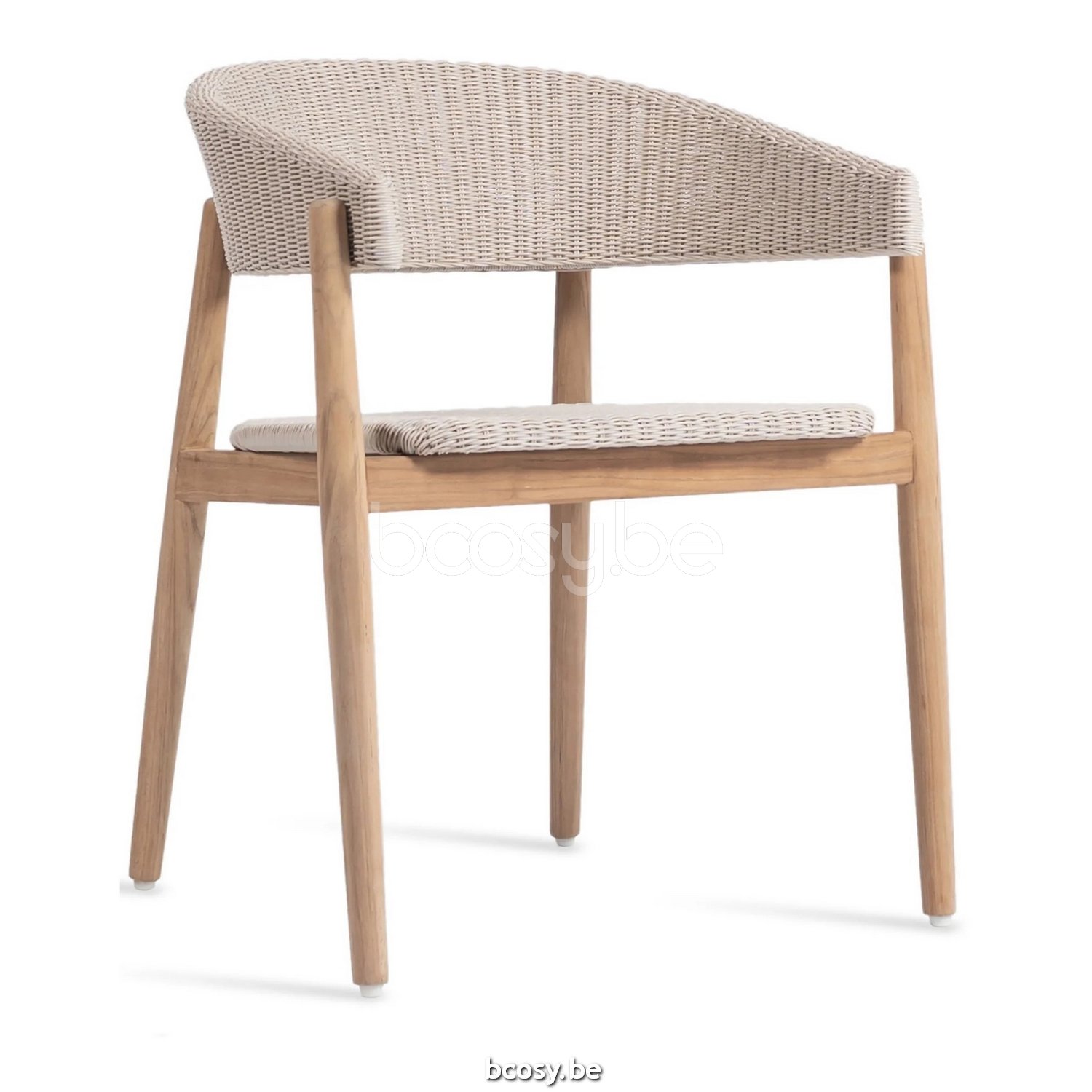 Français: Vincent Sheppard Mona Chaise Cadre en Teck non traité Tressage Vieille dentelle Polyéthylène
